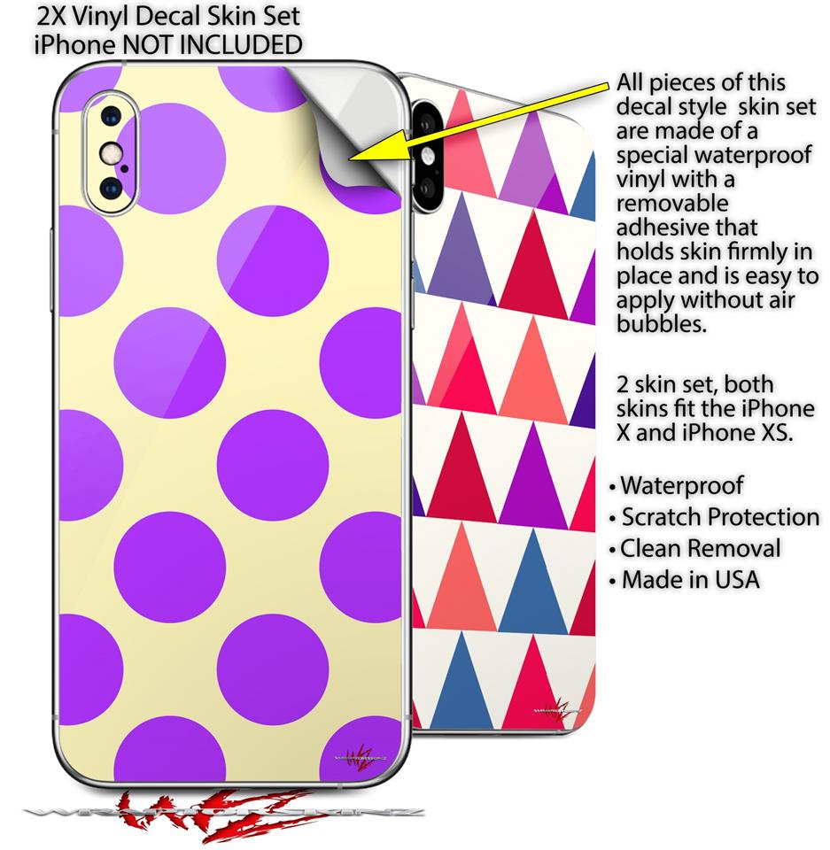 2 Decal style Skin Wraps set for Apple iPhone X and XS Kearas Polka Dots Purple On Cream