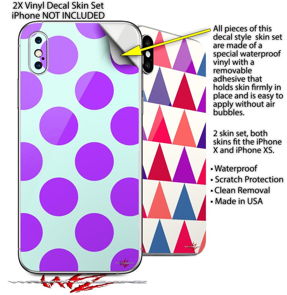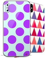 2 Decal style Skin Wraps set for Apple iPhone X and XS Kearas Polka Dots Purple And Blue
