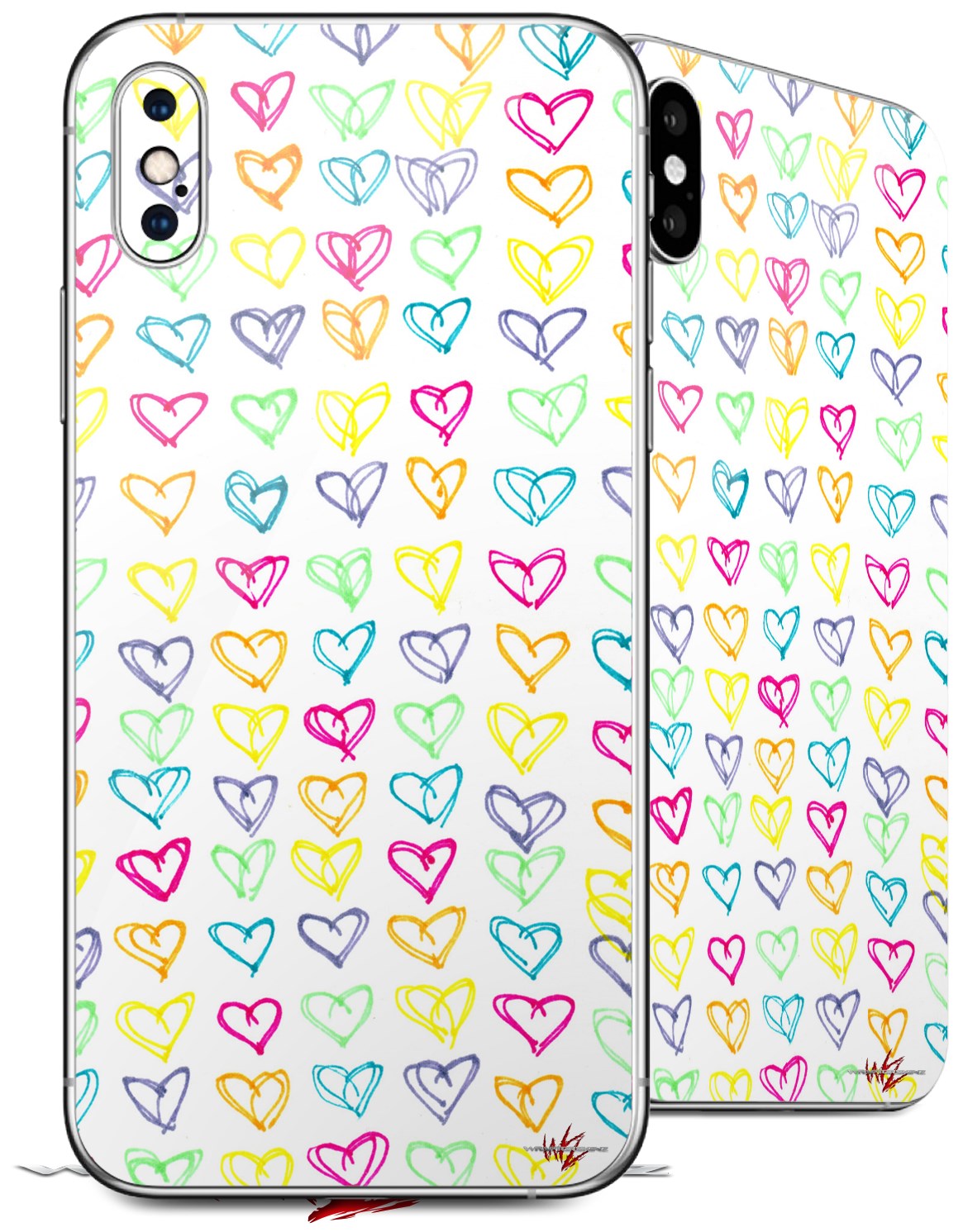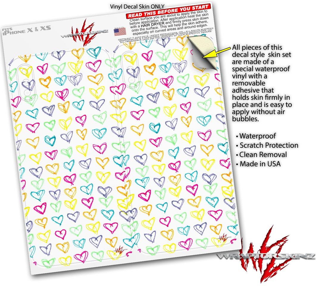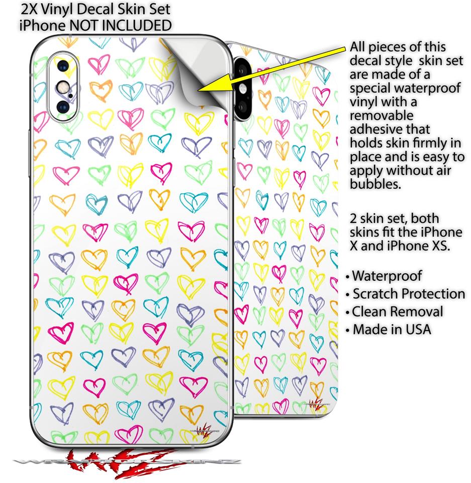 2 Decal style Skin Wraps set for Apple iPhone X and XS Kearas Hearts White