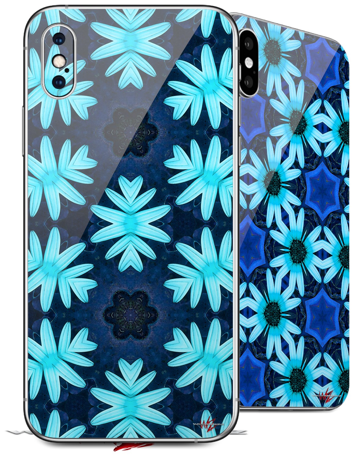 2 Decal style Skin Wraps set for Apple iPhone X and XS Abstract Floral Blue