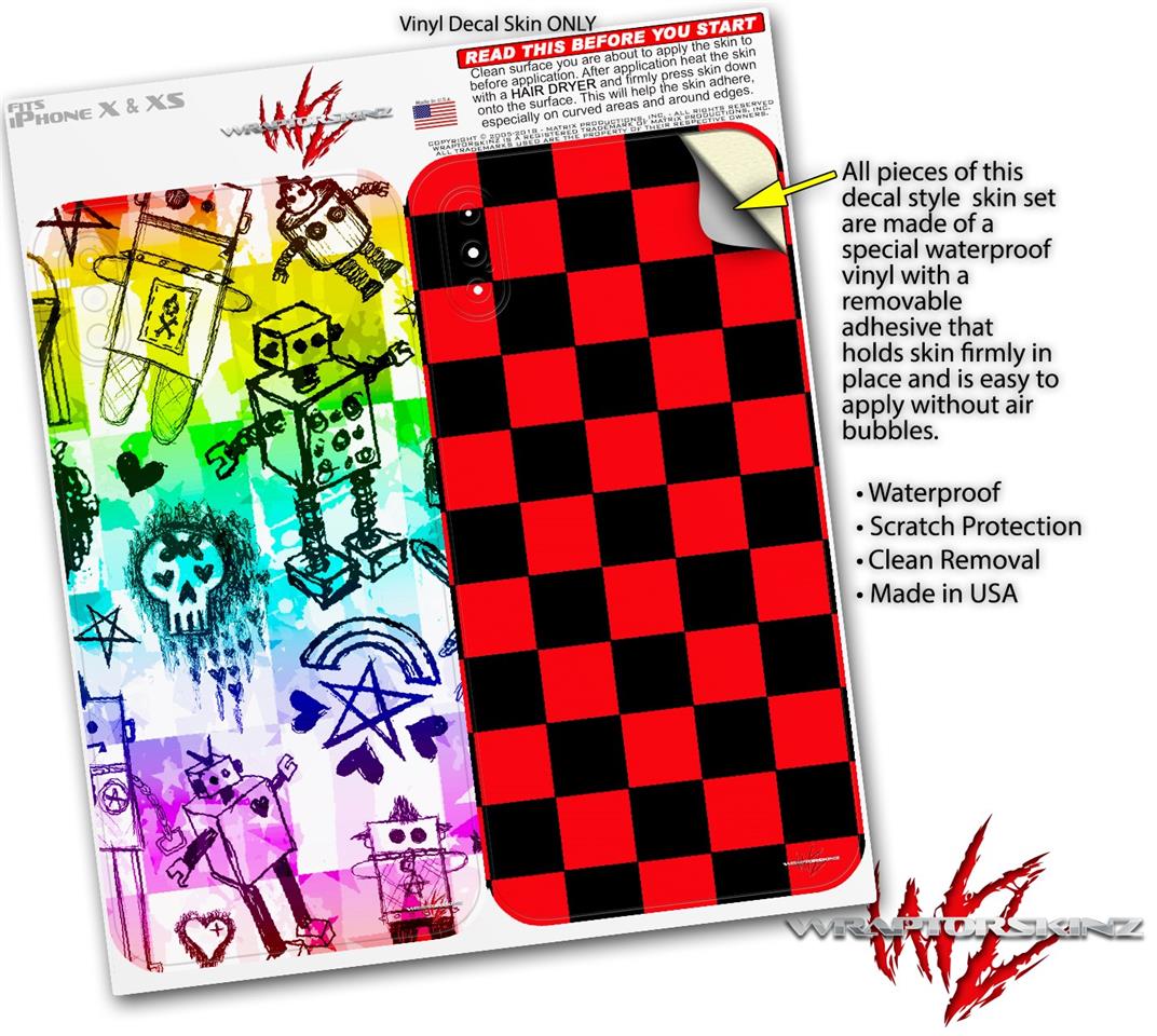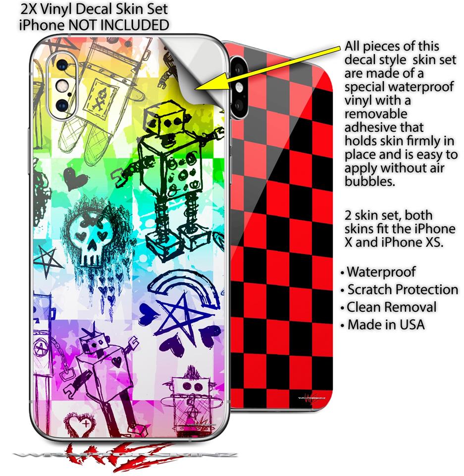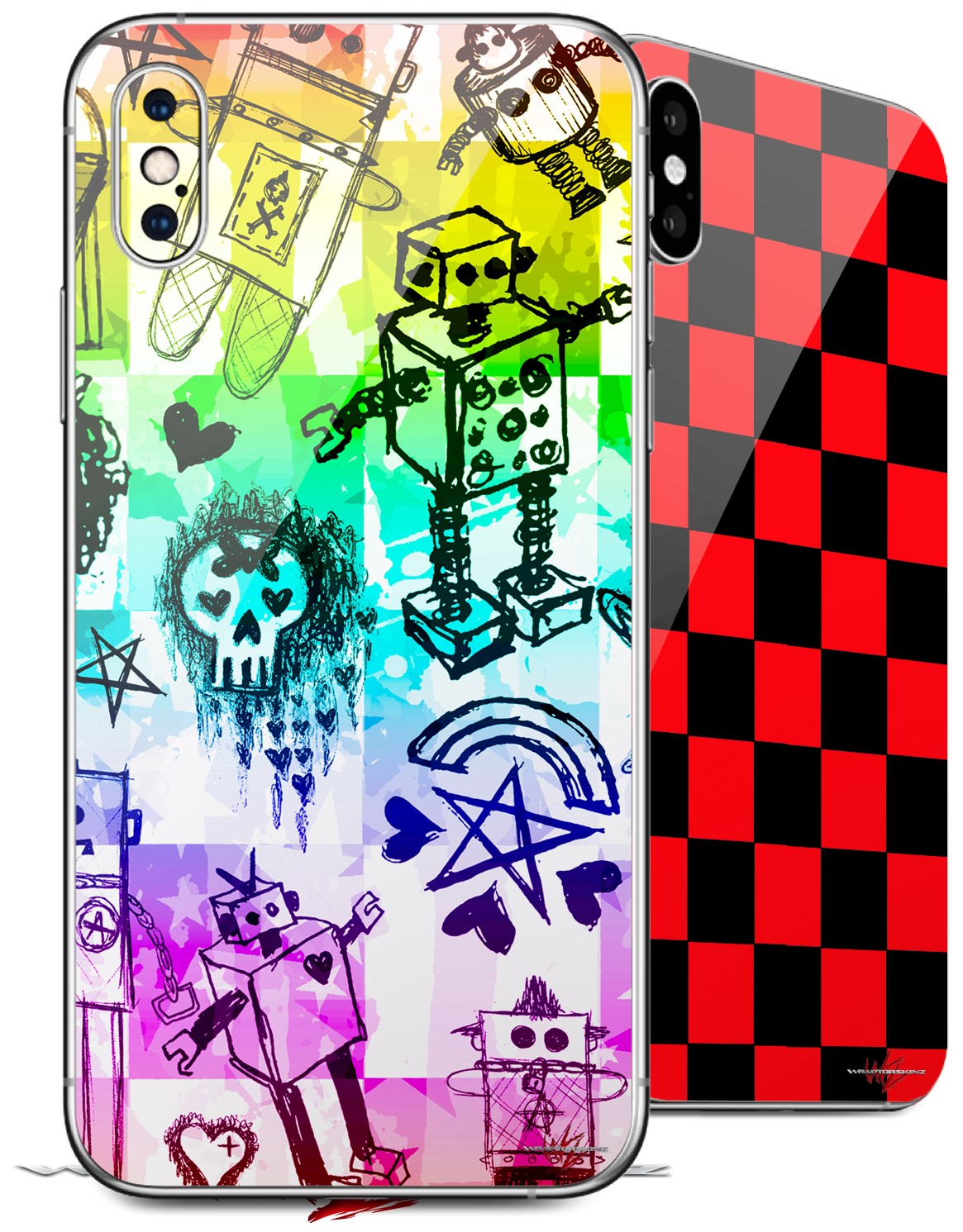 2 Decal style Skin Wraps set for Apple iPhone X and XS Scene Kid Sketches Rainbow