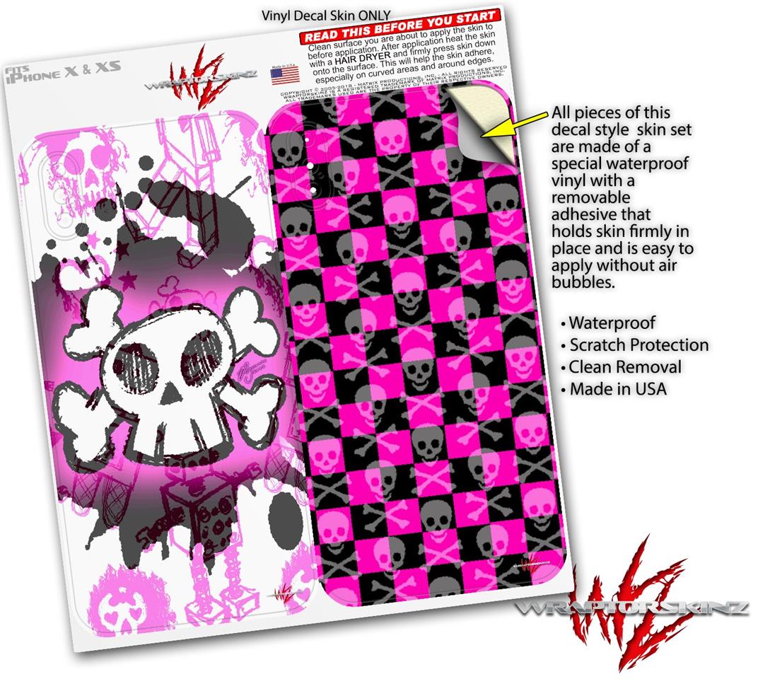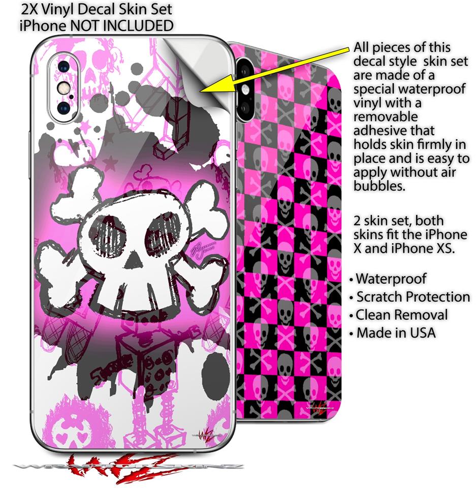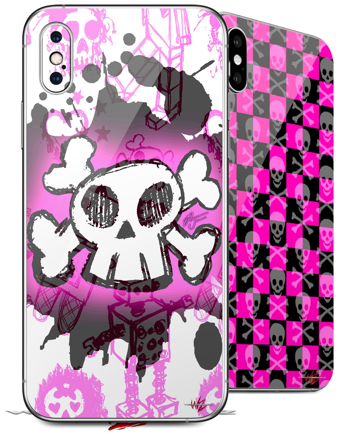 2 Decal style Skin Wraps set for Apple iPhone X and XS Cartoon Skull Pink