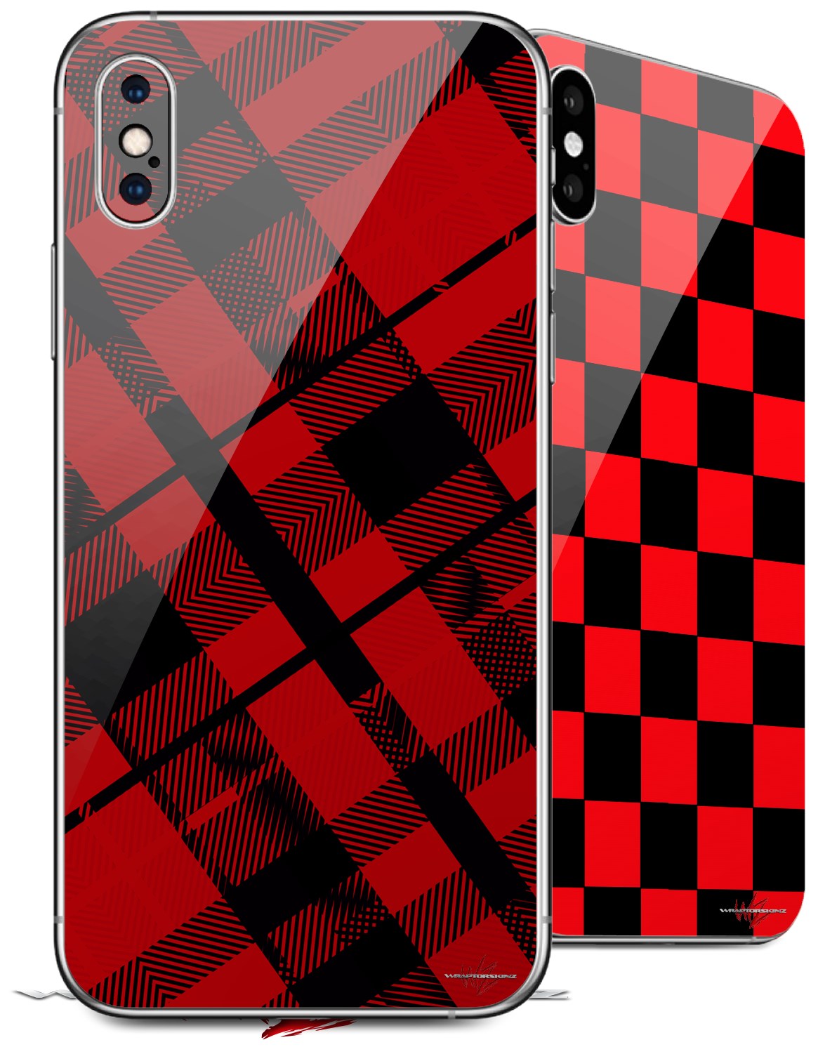 2 Decal style Skin Wraps set for Apple iPhone X and XS Red Plaid
