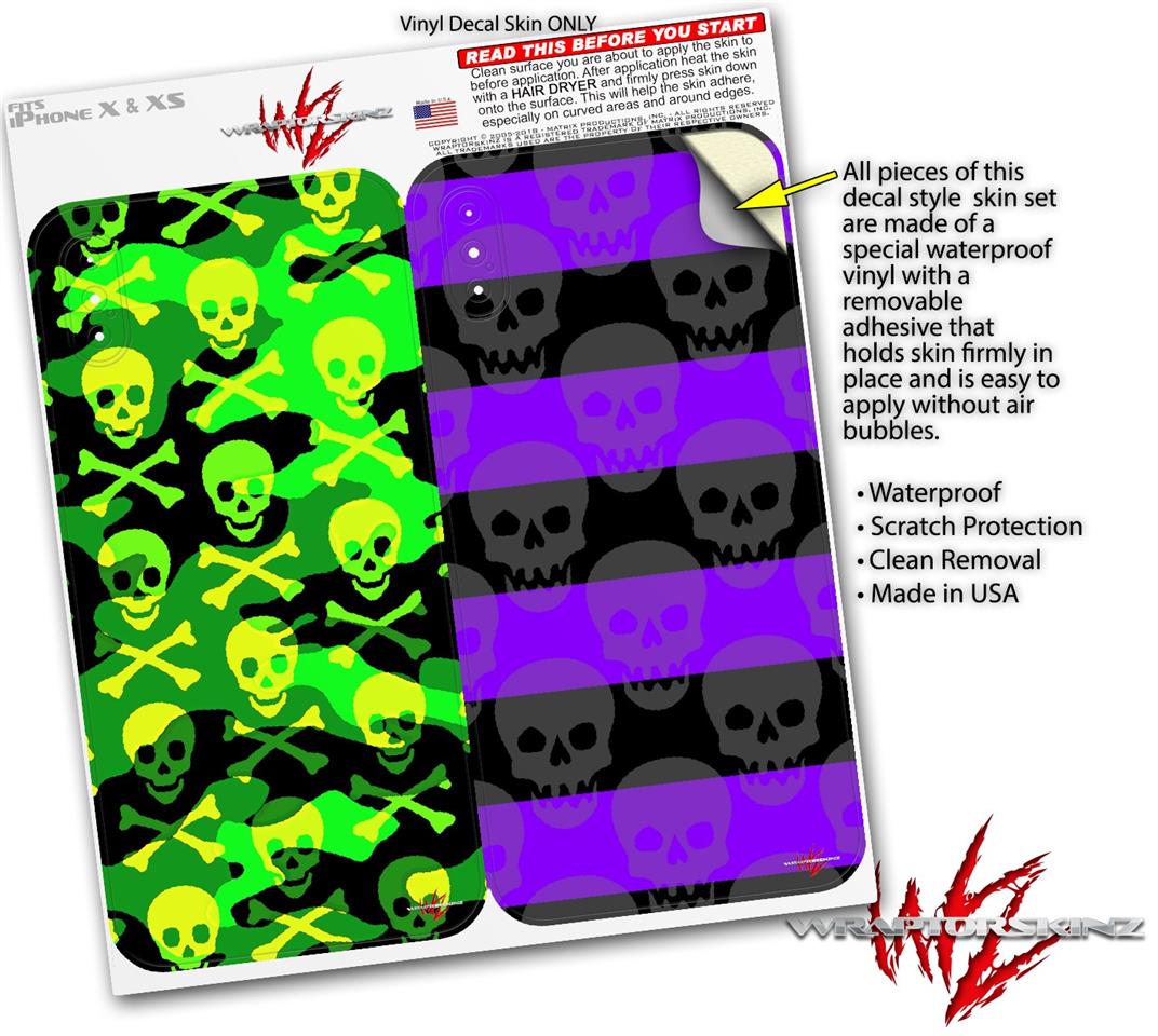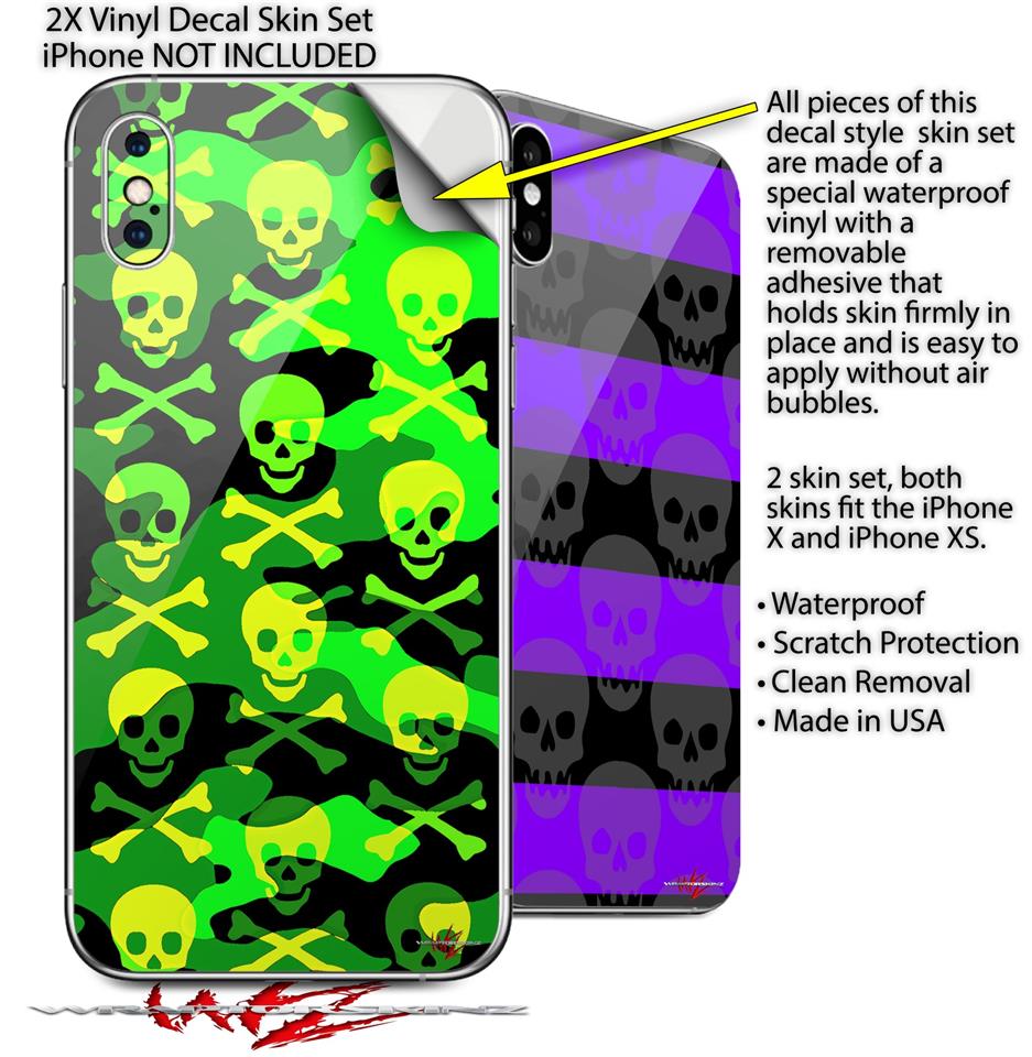 2 Decal style Skin Wraps set for Apple iPhone X and XS Skull Camouflage