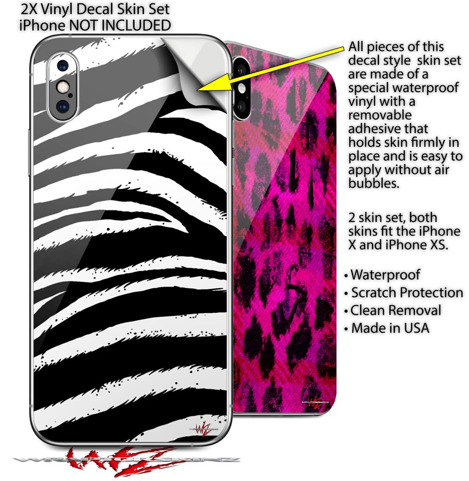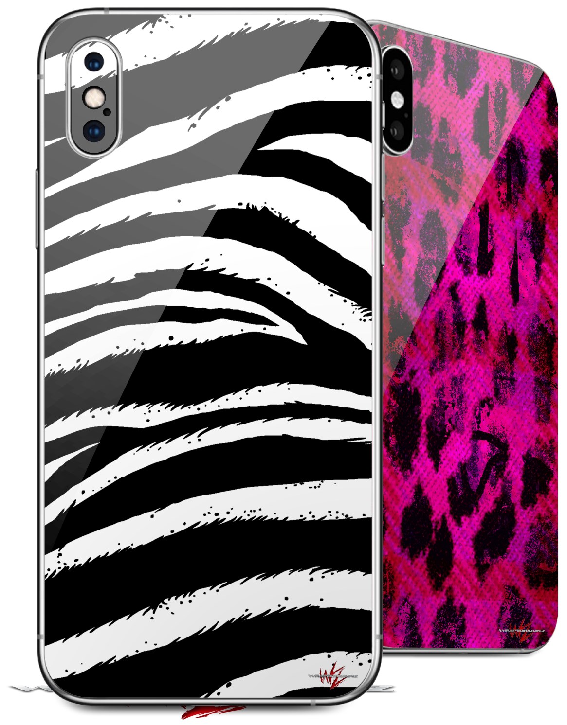 2 Decal style Skin Wraps set for Apple iPhone X and XS Zebra