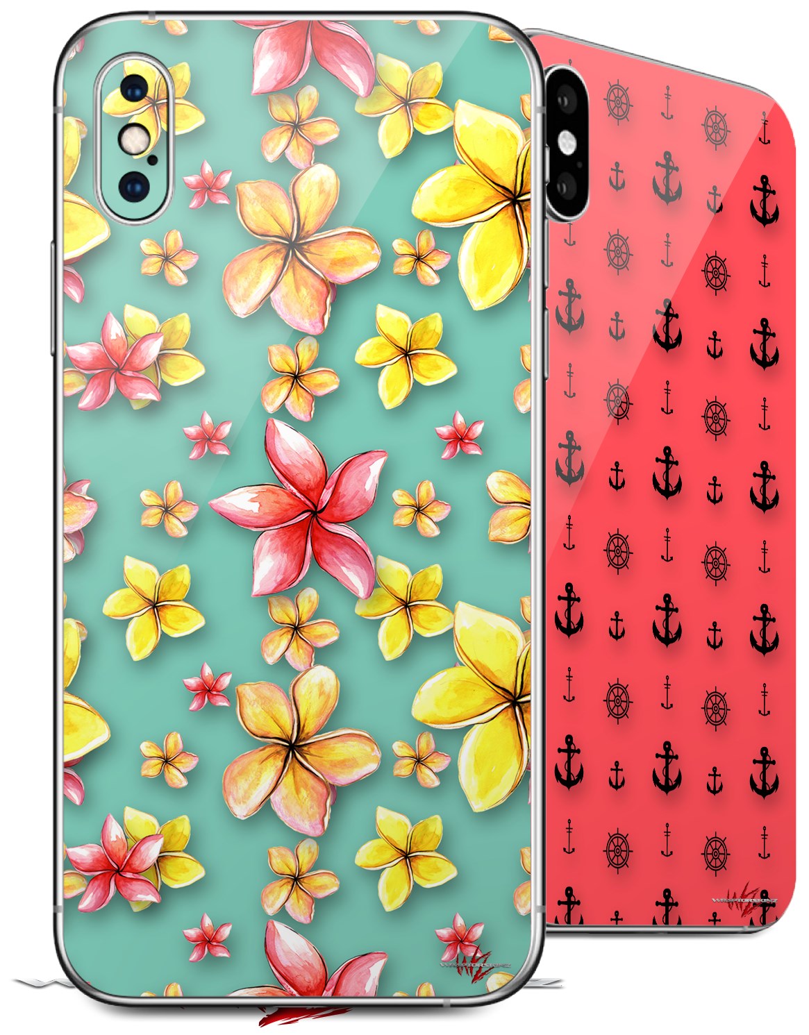 2 Decal style Skin Wraps set for Apple iPhone X and XS Beach Flowers Seafoam Green