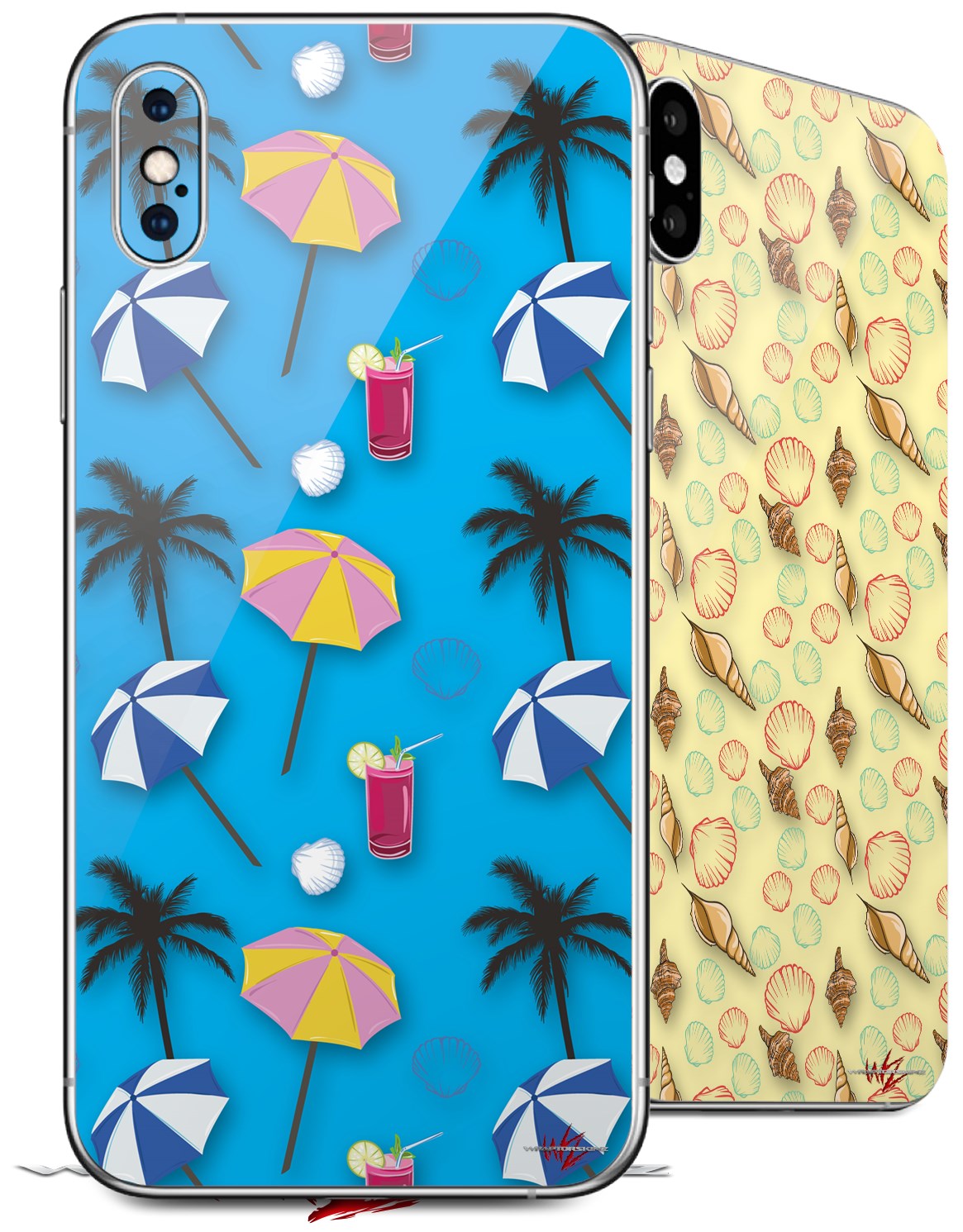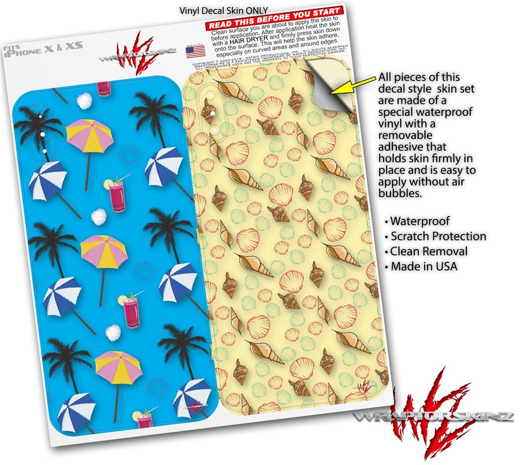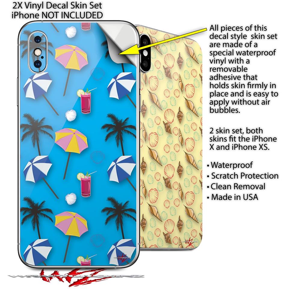 2 Decal style Skin Wraps set for Apple iPhone X and XS Beach Party Umbrellas Blue Medium