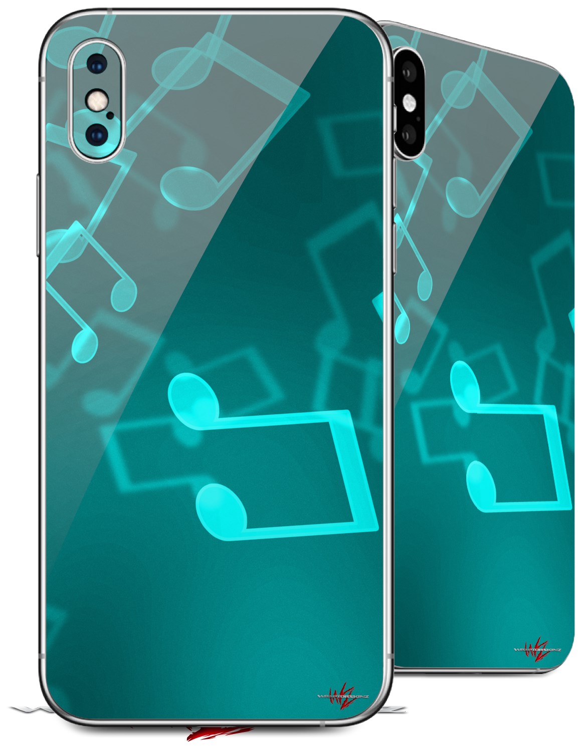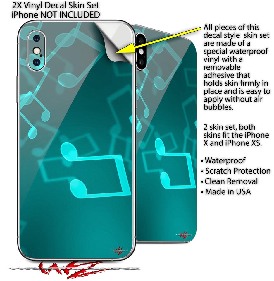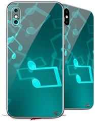 2 Decal style Skin Wraps set for Apple iPhone X and XS Bokeh Music Neon Teal
