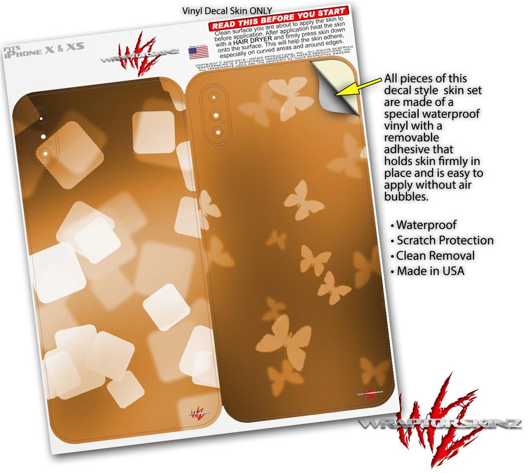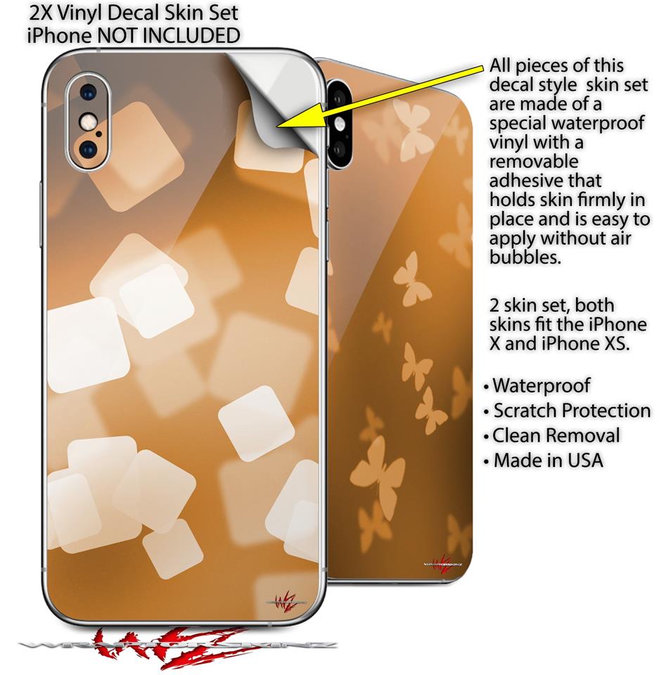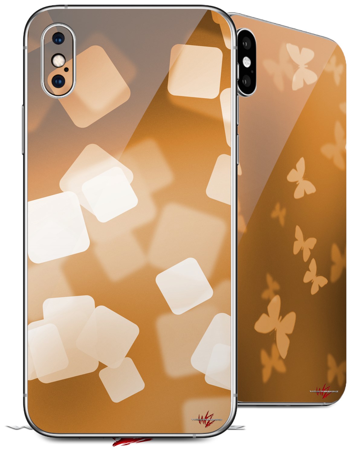 2 Decal style Skin Wraps set for Apple iPhone X and XS Bokeh Squared Orange