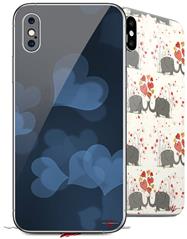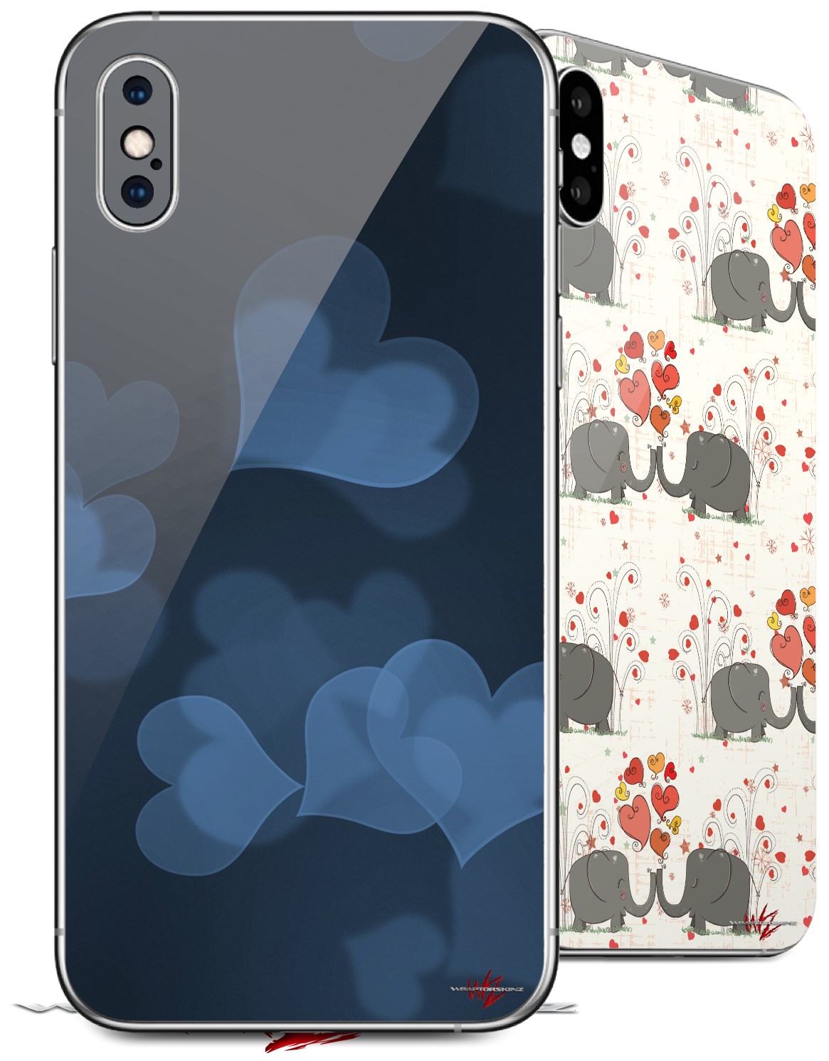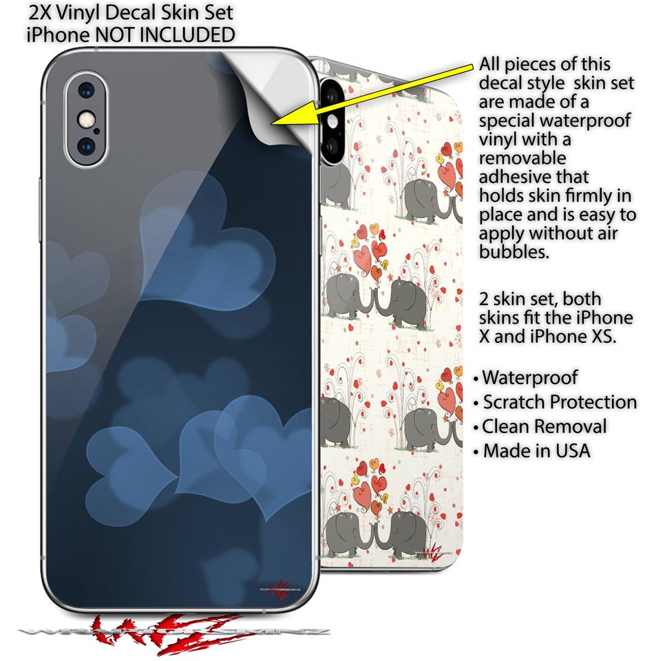 2 Decal style Skin Wraps set for Apple iPhone X and XS Bokeh Hearts Blue