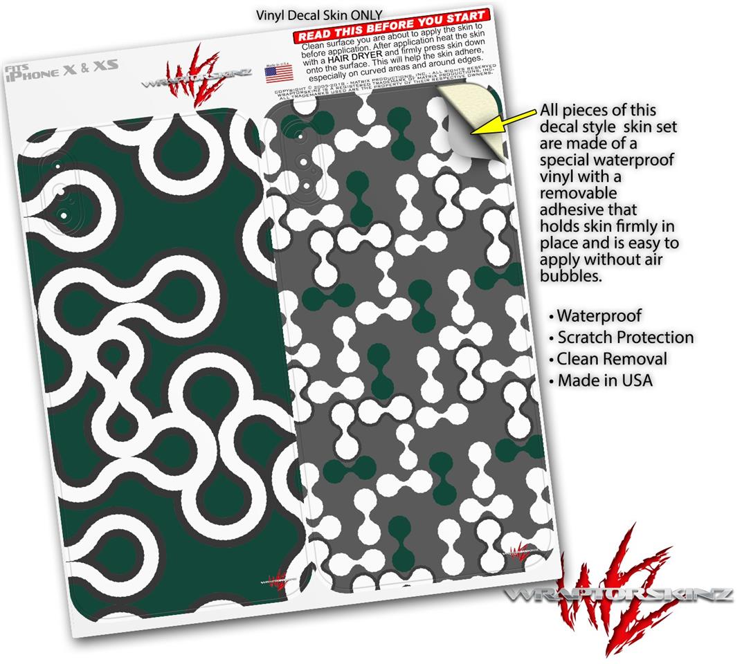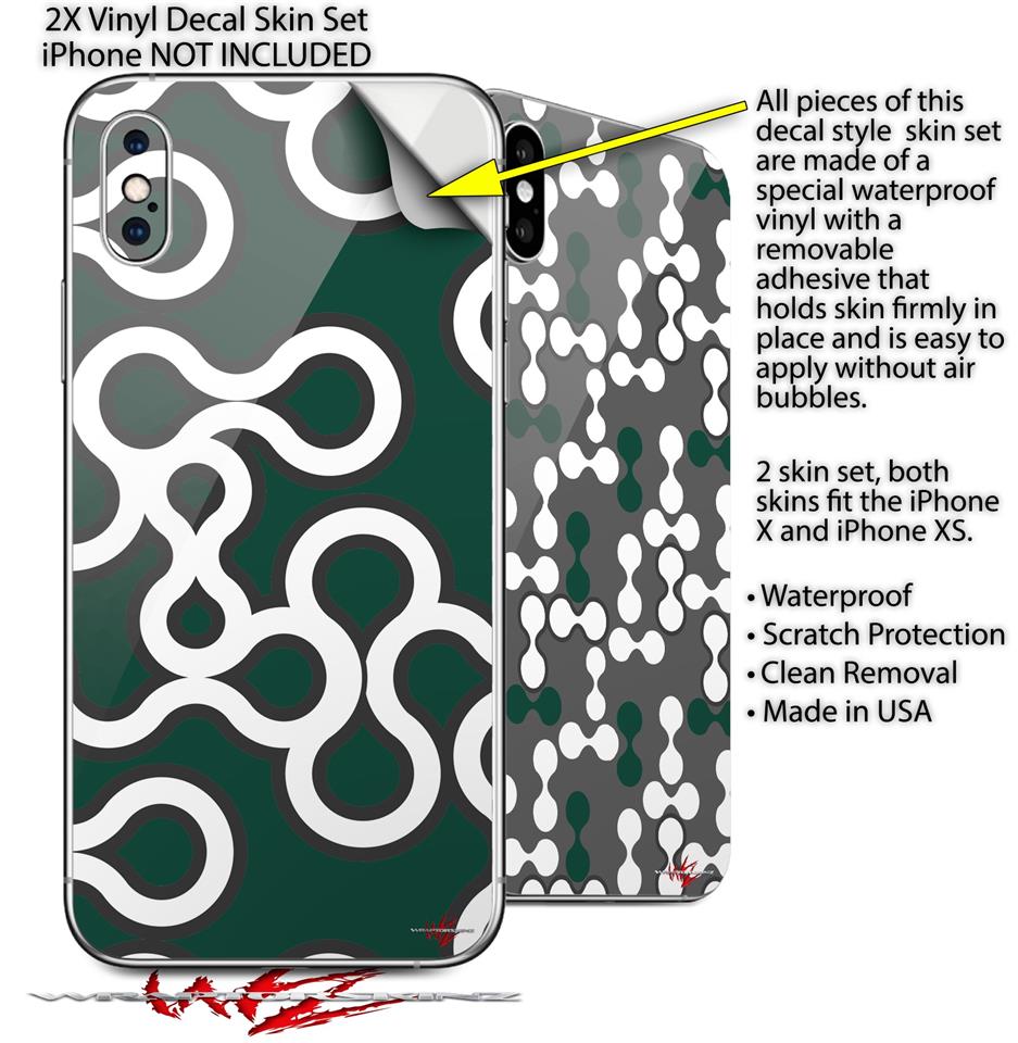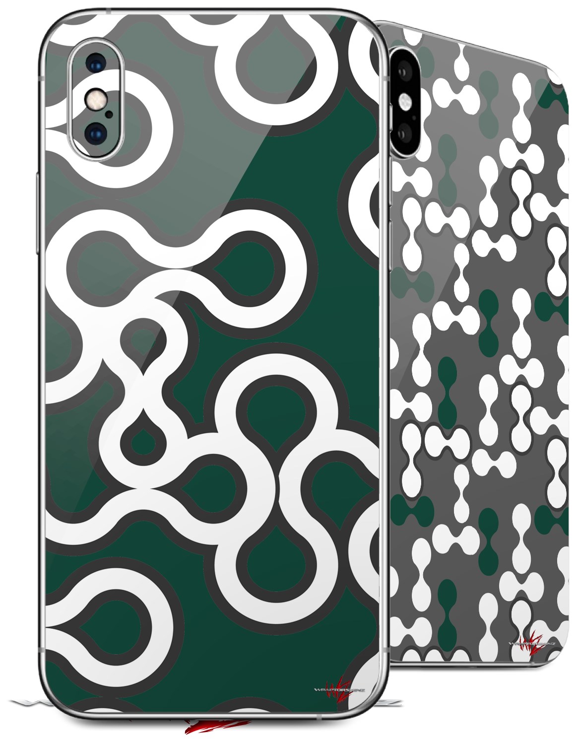 2 Decal style Skin Wraps set for Apple iPhone X and XS Locknodes 03 Hunter Green