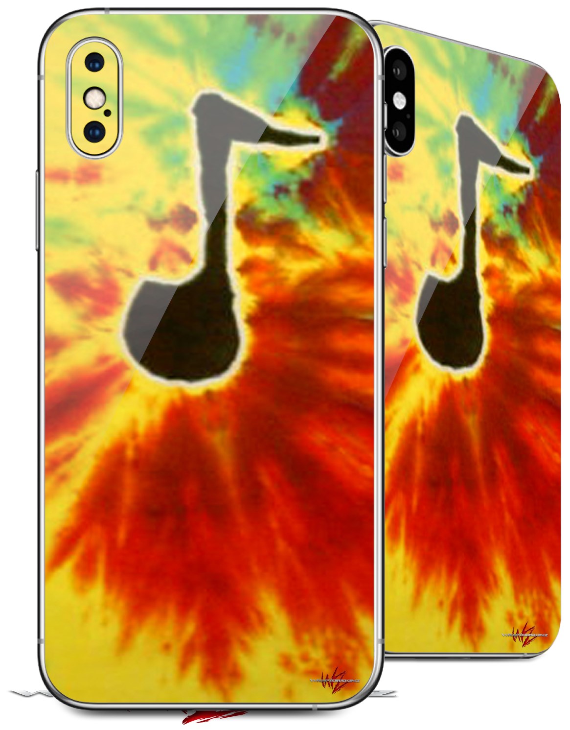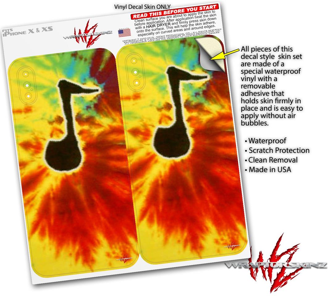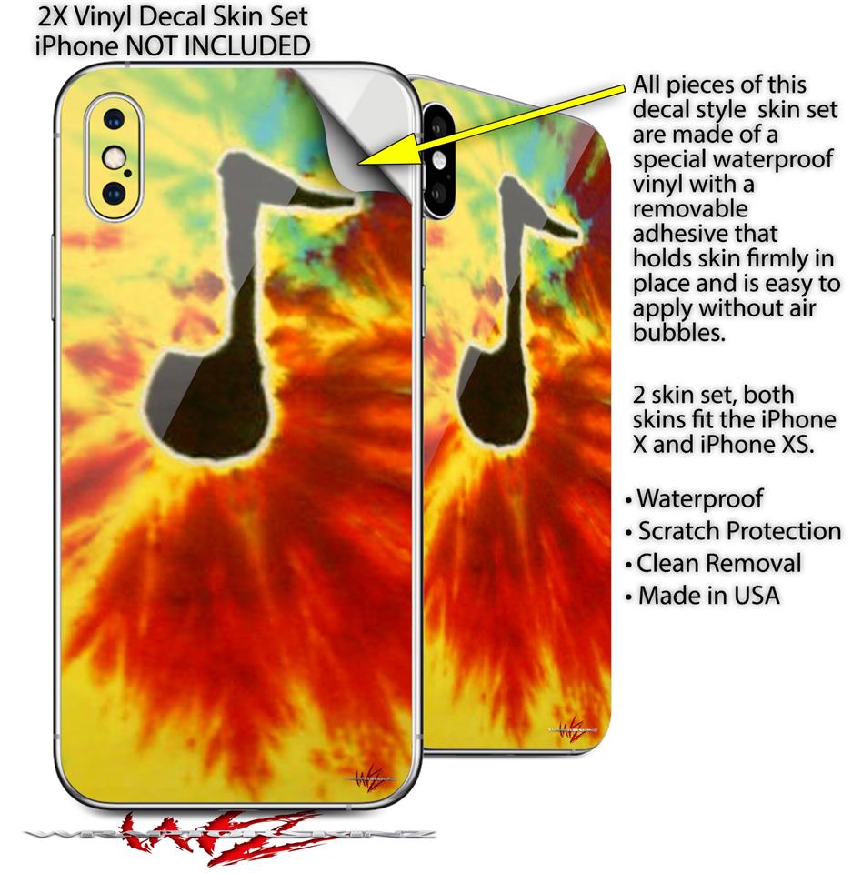 2 Decal style Skin Wraps set for Apple iPhone X and XS Tie Dye Music Note 100
