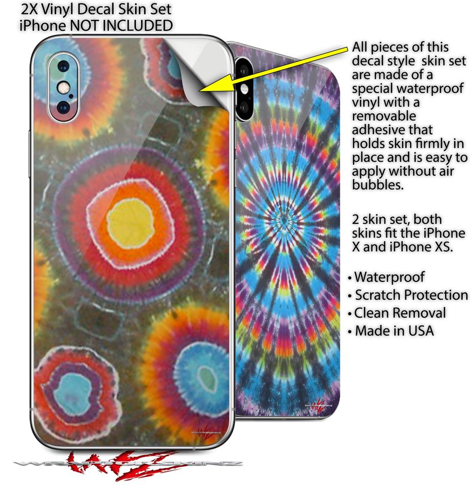 2 Decal style Skin Wraps set for Apple iPhone X and XS Tie Dye Circles 100