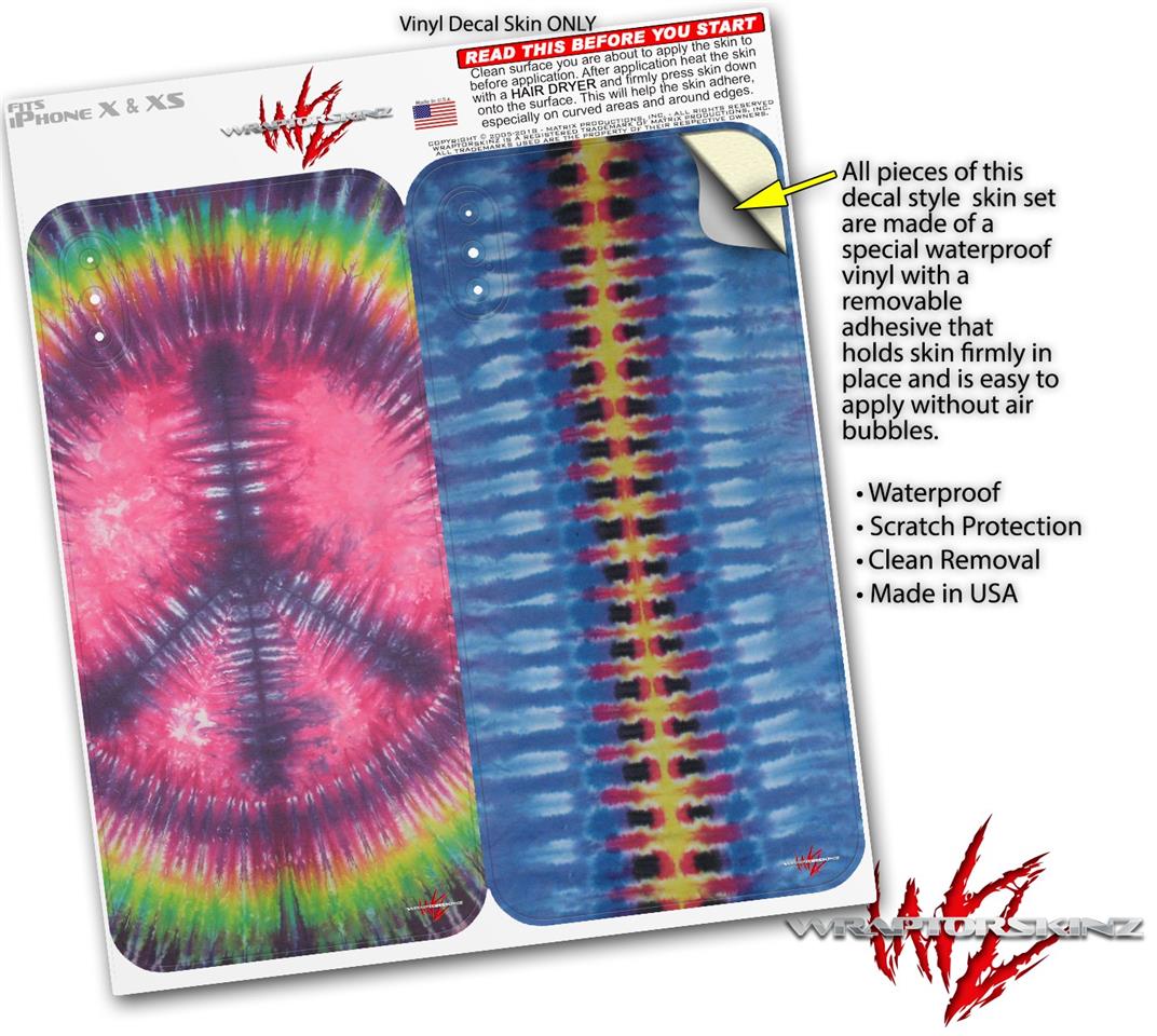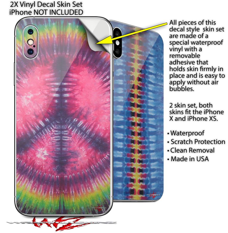 2 Decal style Skin Wraps set for Apple iPhone X and XS Tie Dye Peace Sign 103