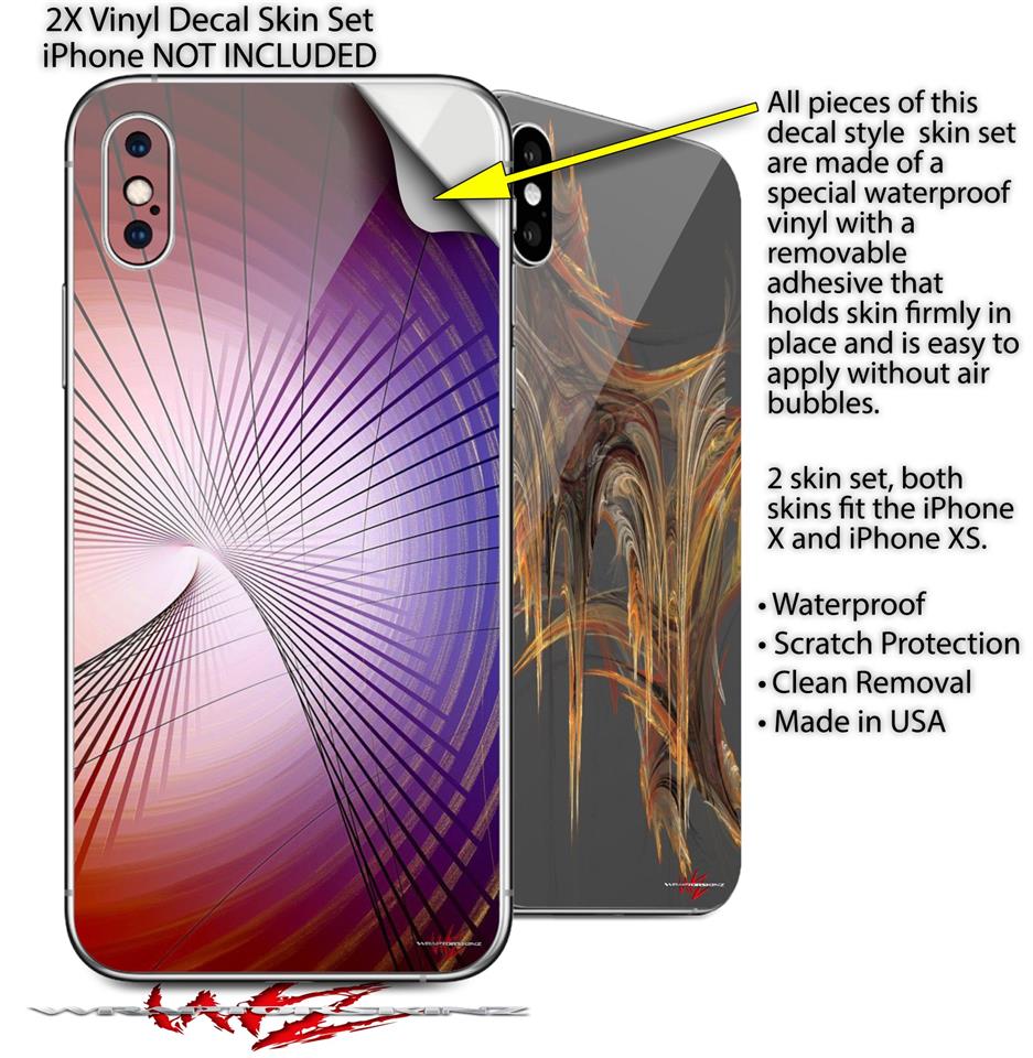• 2 Decal style vinyl skins covers back side of the Apple iPhone X and iPhone XS - Not a hard case - Compatible with most Clear and TPU cases.