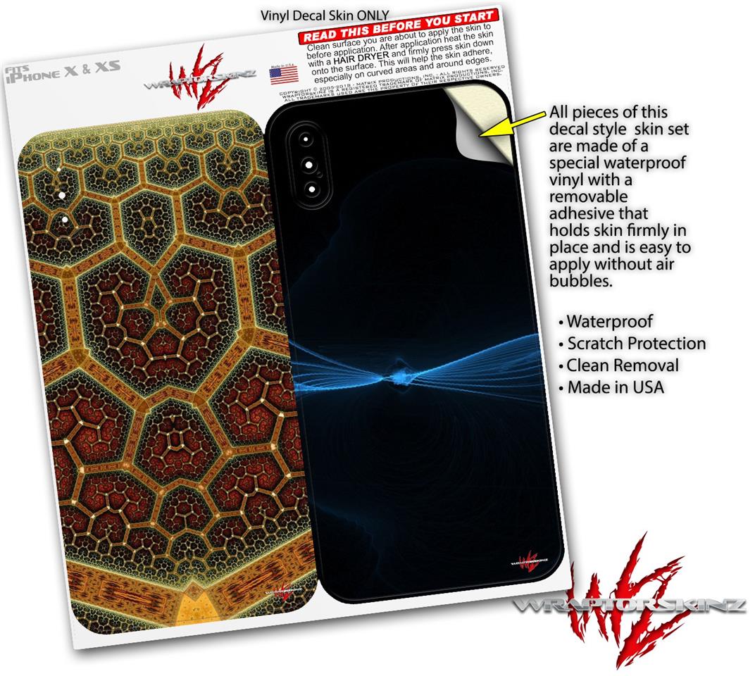• 2 Decal style vinyl skins covers back side of the Apple iPhone X and iPhone XS - Not a hard case - Compatible with most Clear and TPU cases.