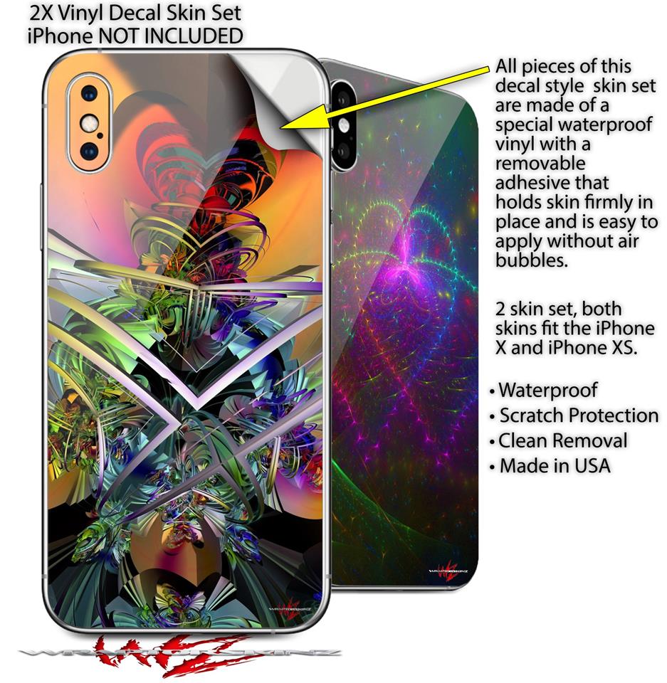 2 Decal style Skin Wraps set for Apple iPhone X and XS Atomic Love