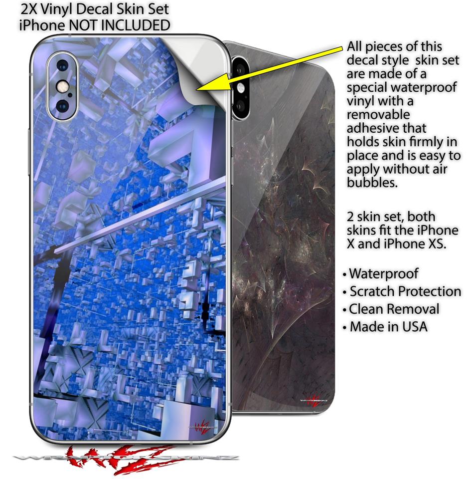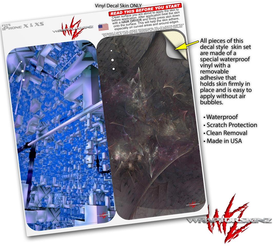 • 2 Decal style vinyl skins covers back side of the Apple iPhone X and iPhone XS - Not a hard case - Compatible with most Clear and TPU cases.