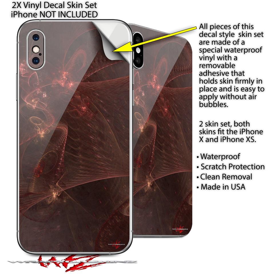 • 2 Decal style vinyl skins covers back side of the Apple iPhone X and iPhone XS - Not a hard case - Compatible with most Clear and TPU cases.