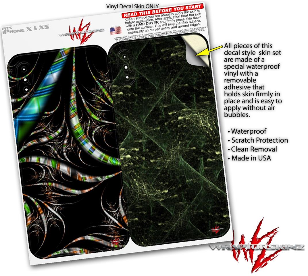 • 2 Decal style vinyl skins covers back side of the Apple iPhone X and iPhone XS - Not a hard case - Compatible with most Clear and TPU cases.