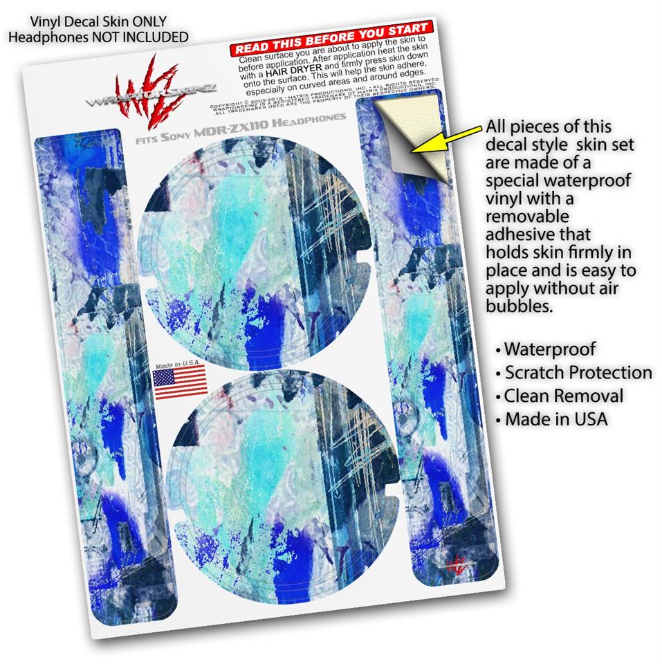 Decal style Skin Wrap for Sony MDR ZX110 Headphones Graffiti Blue (HEADPHONES NOT INCLUDED)