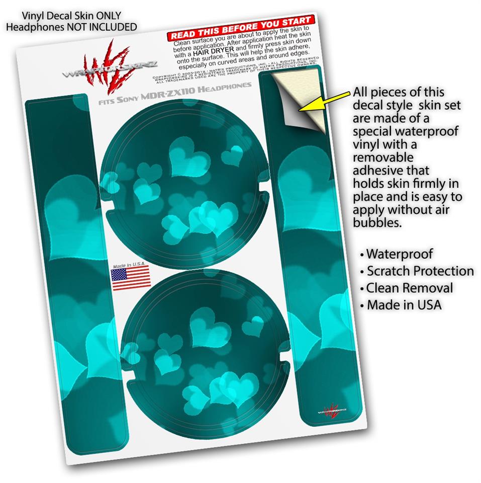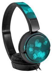 Decal style Skin Wrap for Sony MDR ZX110 Headphones Bokeh Hearts Neon Teal (HEADPHONES NOT INCLUDED)