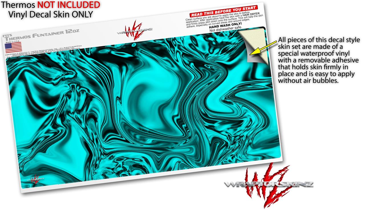 Skin Decal Wrap compatible with Thermos Funtainer 12oz Bottle Liquid Metal Chrome Neon Teal (BOTTLE NOT INCLUDED)