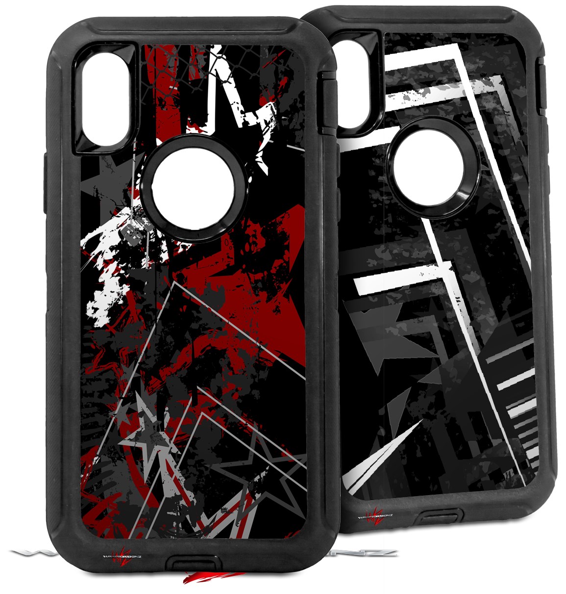 2x Decal style Skin Wrap Set compatible with Otterbox Defender iPhone X and Xs Case - Baja 0003 Red Dark (CASE NOT INCLUDED)