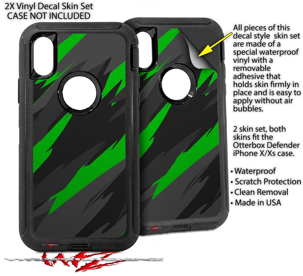 2x Decal style Skin Wrap Set compatible with Otterbox Defender iPhone X and Xs Case - Jagged Camo Green (CASE NOT INCLUDED)