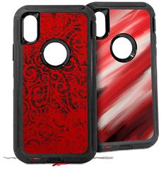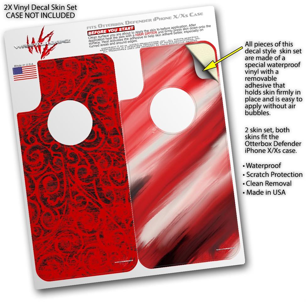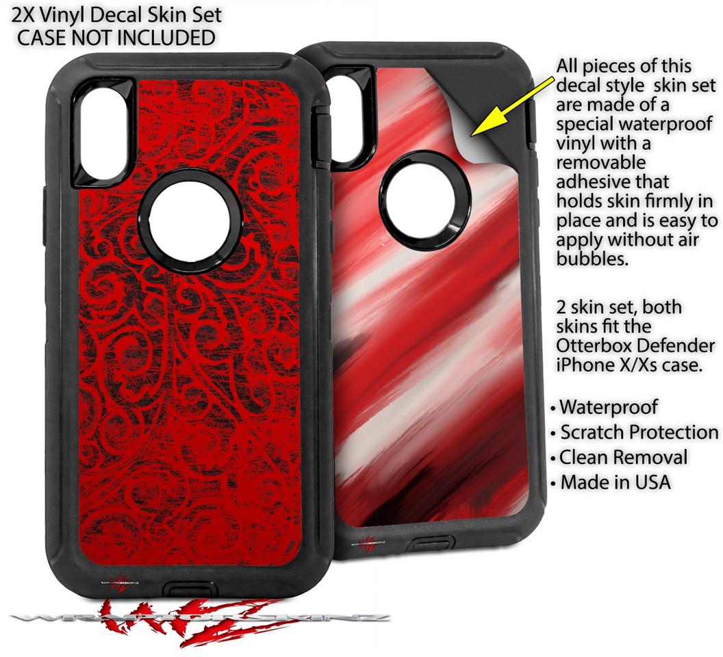 2x Decal style Skin Wrap Set compatible with Otterbox Defender iPhone X and Xs Case - Folder Doodles Red (CASE NOT INCLUDED)