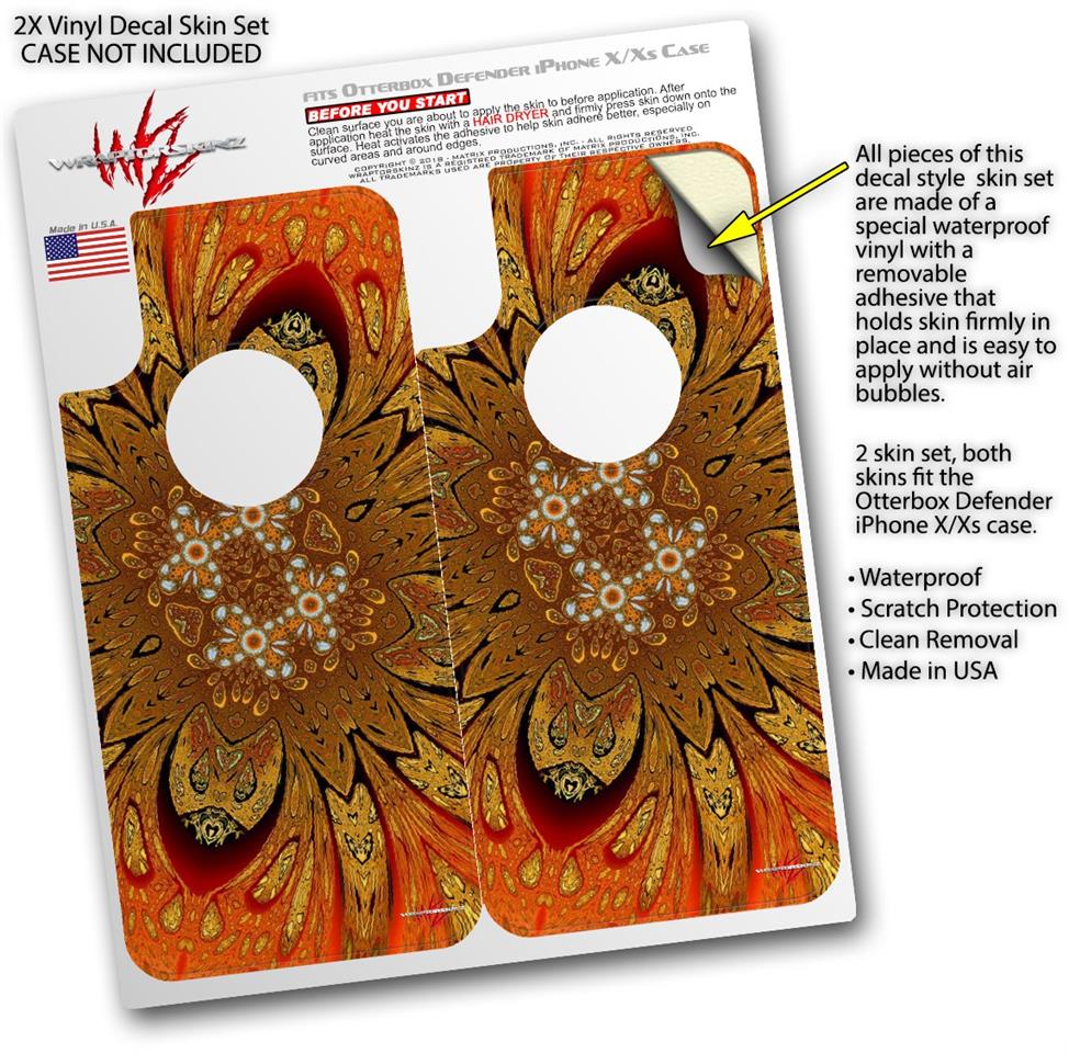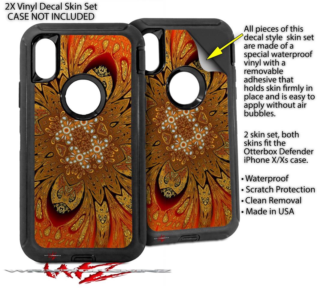 2x Decal style Skin Wrap Set compatible with Otterbox Defender iPhone X and Xs Case - Flower Stone (CASE NOT INCLUDED)