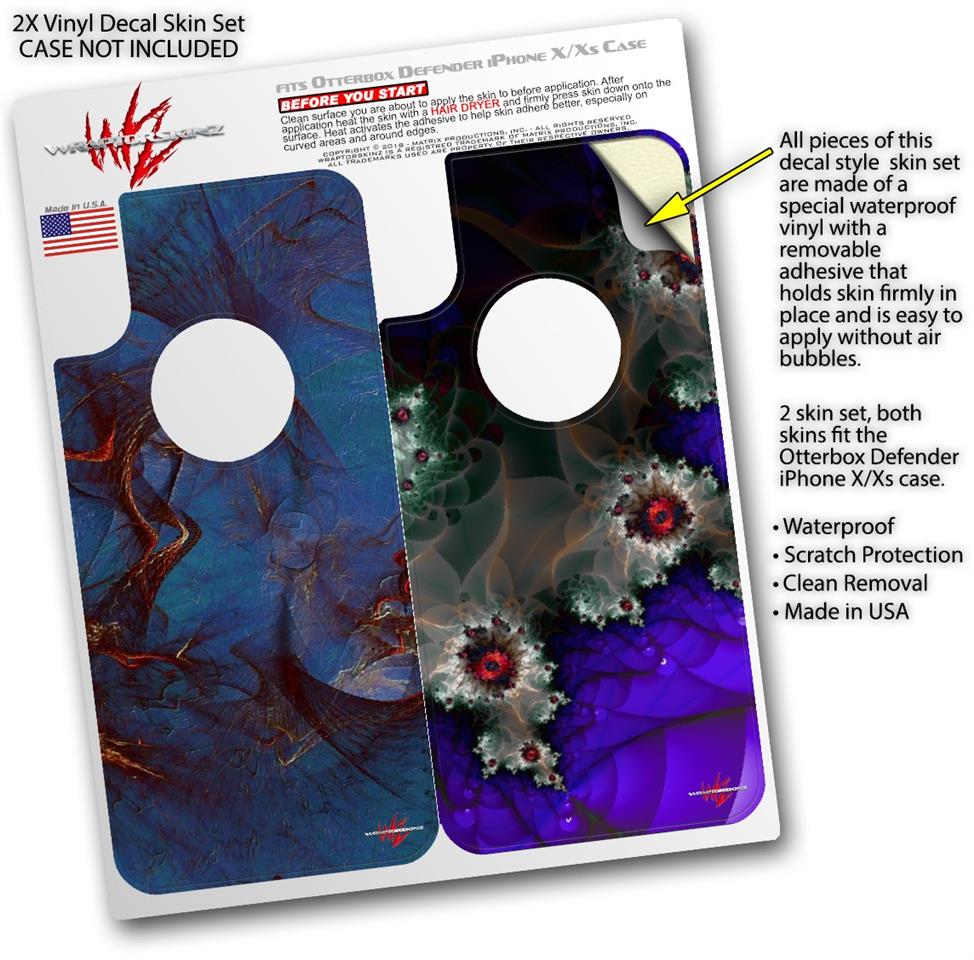 WraptorSkinz® skin wraps compatible with Otterbox Defender iPhone X / Xs Cases are printed using superb photo quality designs and vibrant colors printed with special fade resistant inks that last even in direct sun for years. WraptorSkinz are a composite of two layers of commercial grade materials. The bottom layer is a soft, flexible vinyl with a special removable adhesive that is easily positioned, applied without air bubbles. Next, we print the bottom layer with UV protected, fade resistant inks that deliver superb photo quality designs in vibrant colors. Finally, we bond a professional grade laminate over the entire skin adding a glossy protective finish. This product is not affiliated with or endorsed by Otterbox.