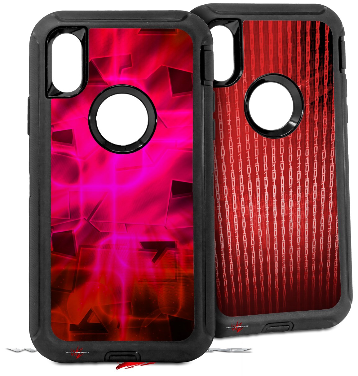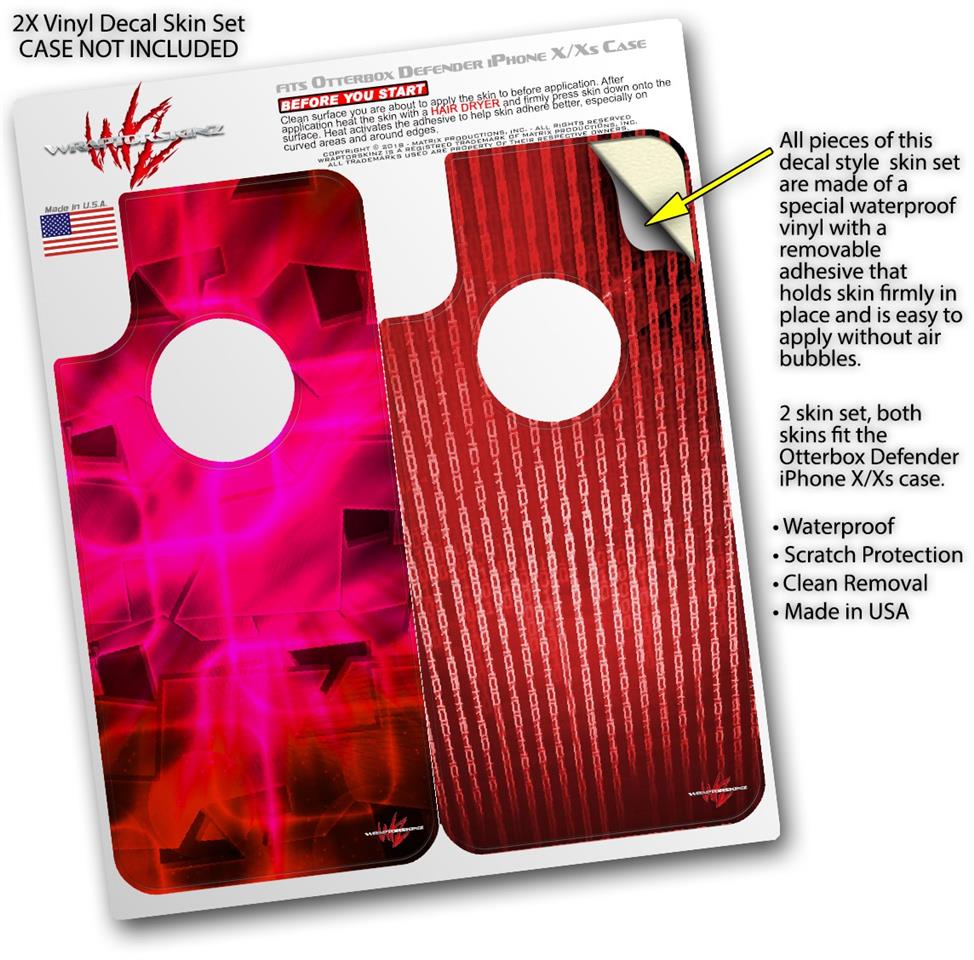 2x Decal style Skin Wrap Set compatible with Otterbox Defender iPhone X and Xs Case - Cubic Shards Red (CASE NOT INCLUDED)
