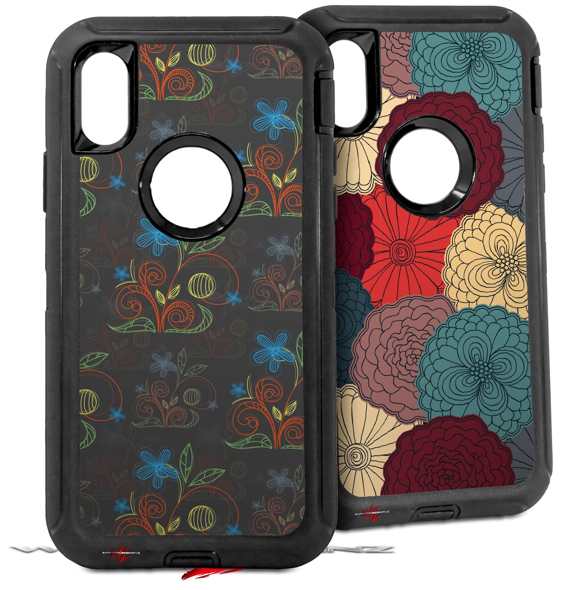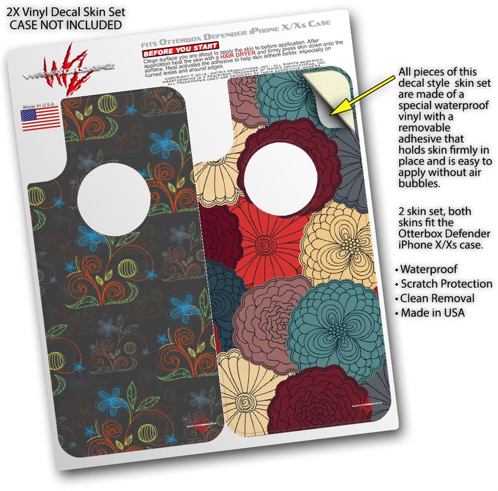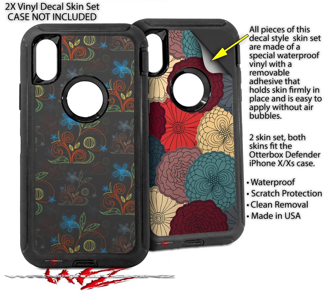2x Decal style Skin Wrap Set compatible with Otterbox Defender iPhone X and Xs Case - Flowers Pattern 07 (CASE NOT INCLUDED)