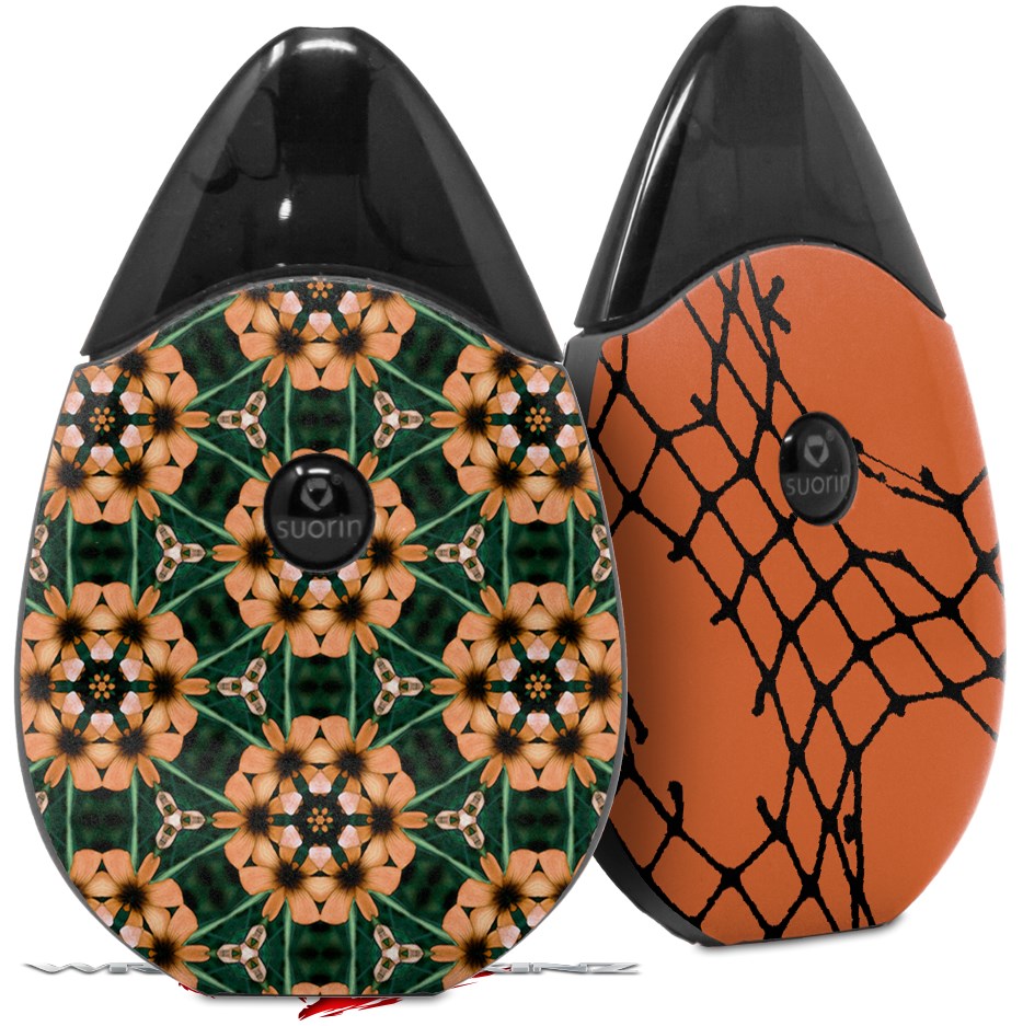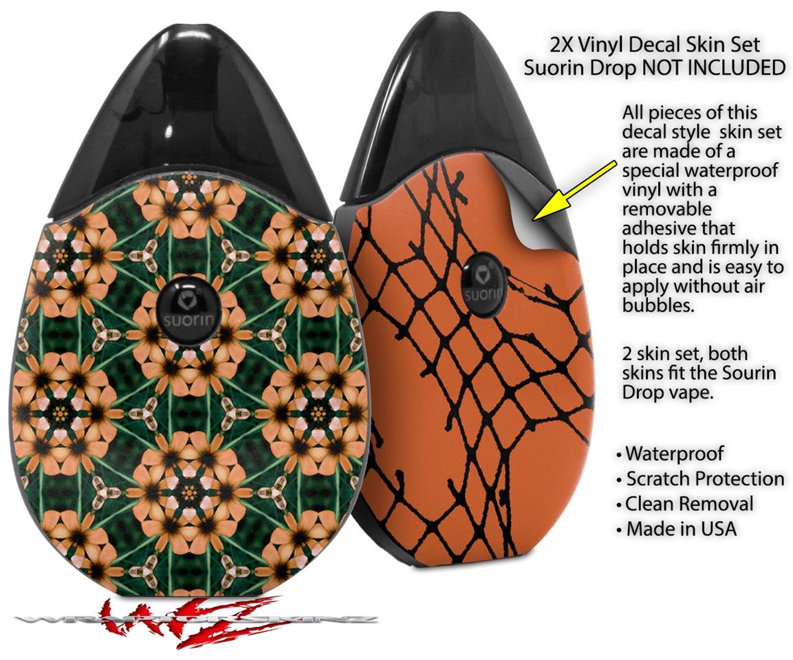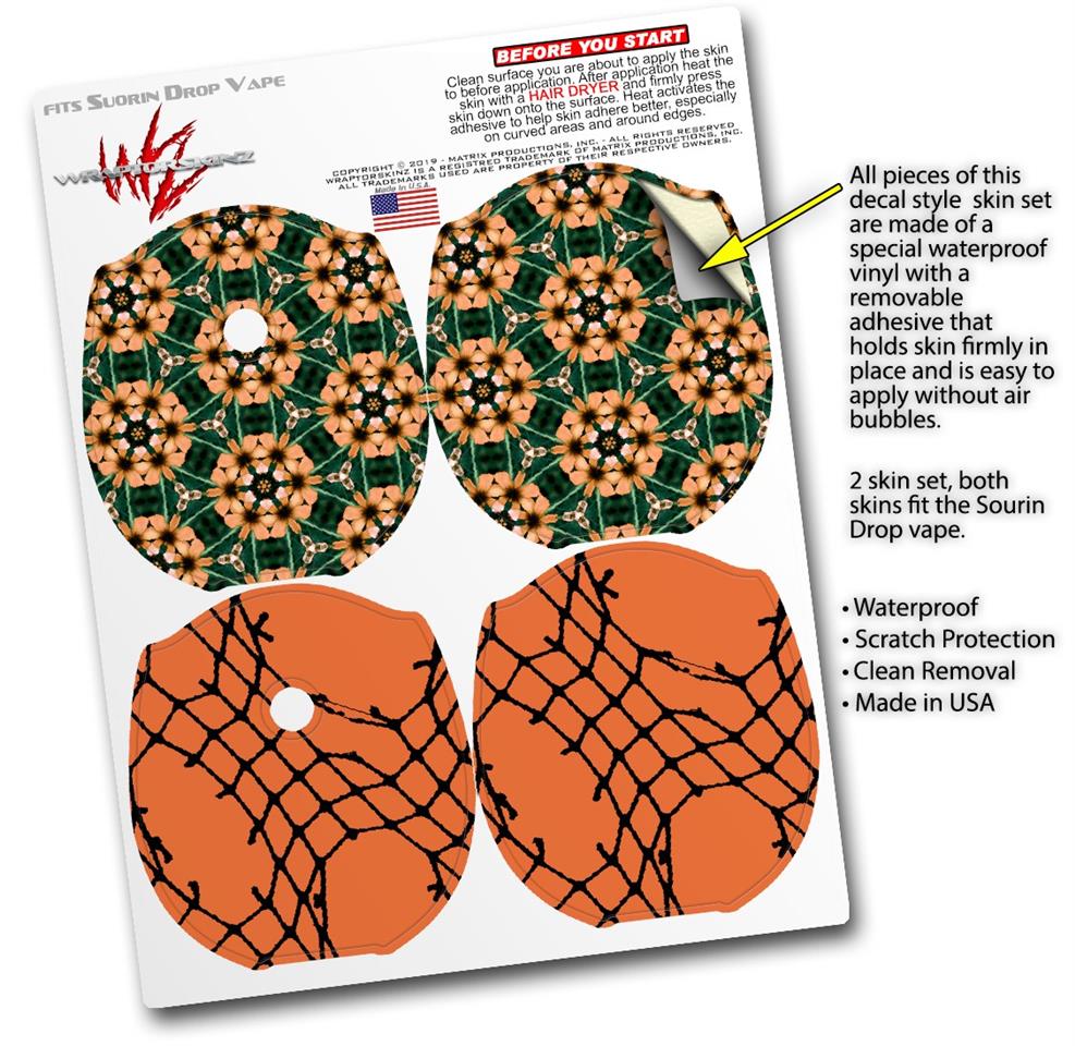 Skin Decal Wrap 2 Pack compatible with Suorin Drop Floral Pattern Orange VAPE NOT INCLUDED