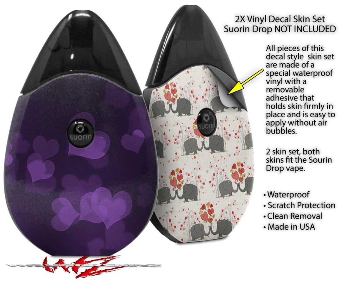 Skin Decal Wrap 2 Pack compatible with Suorin Drop Bokeh Hearts Purple VAPE NOT INCLUDED