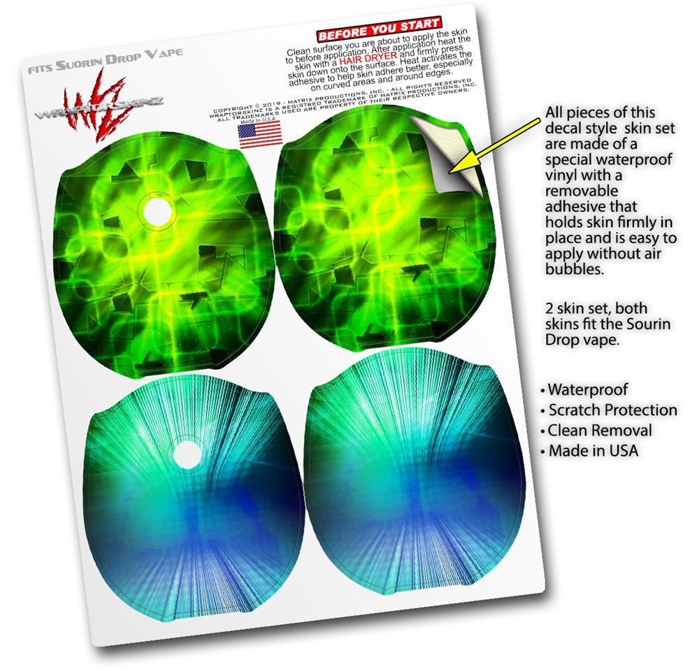 Skin Decal Wrap 2 Pack compatible with Suorin Drop Cubic Shards Green VAPE NOT INCLUDED