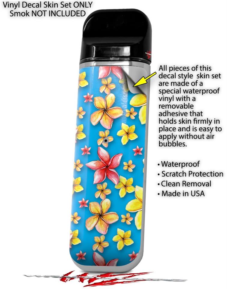 Skin Decal Wrap 2 Pack for Smok Novo v1 Beach Flowers Blue Medium VAPE NOT INCLUDED
