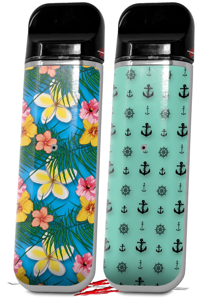 Skin Decal Wrap 2 Pack for Smok Novo v1 Beach Flowers 02 Blue Medium VAPE NOT INCLUDED