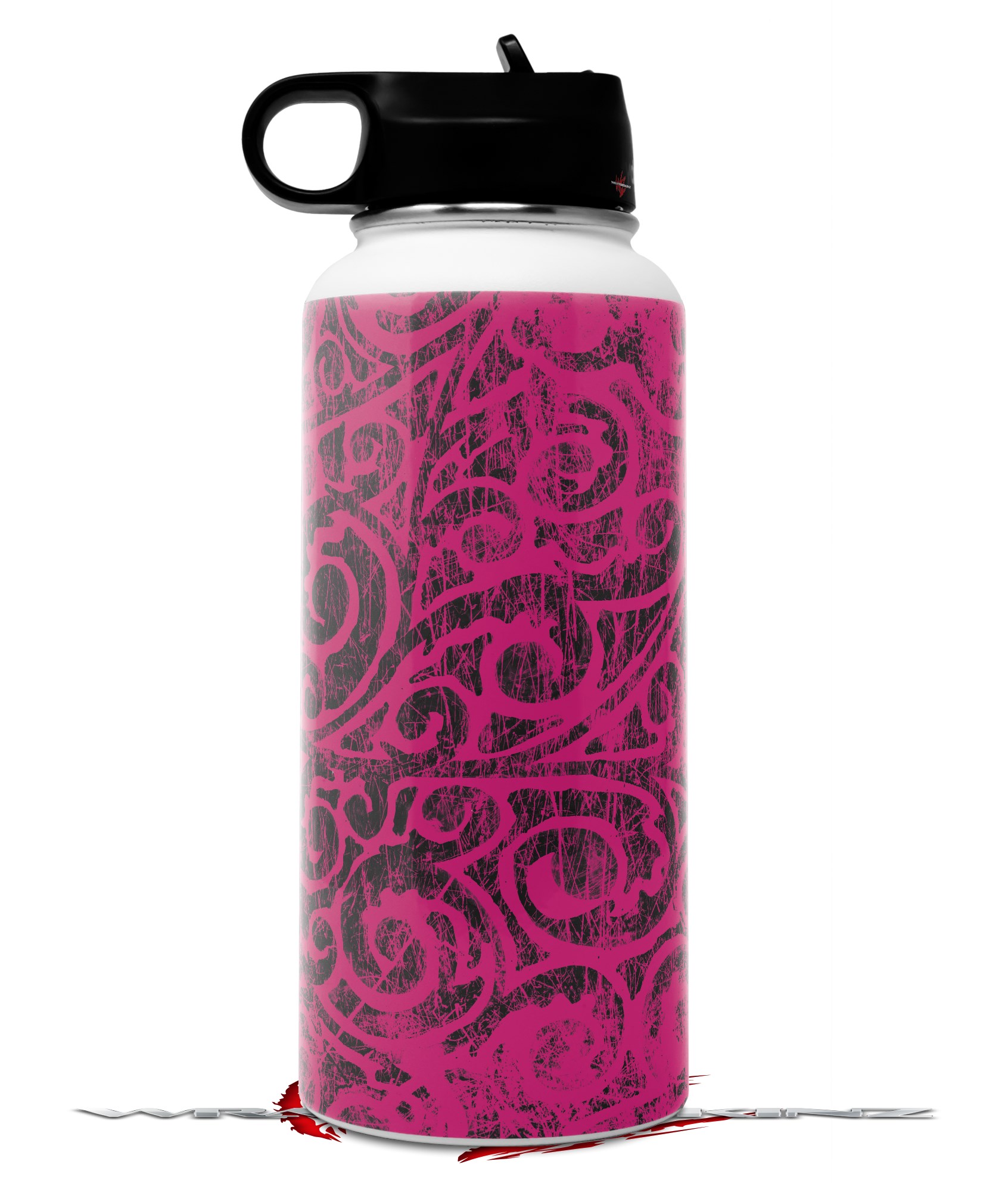 Skin Wrap Decal compatible with Hydro Flask Wide Mouth Bottle 32oz Folder Doodles Fuchsia (BOTTLE NOT INCLUDED)