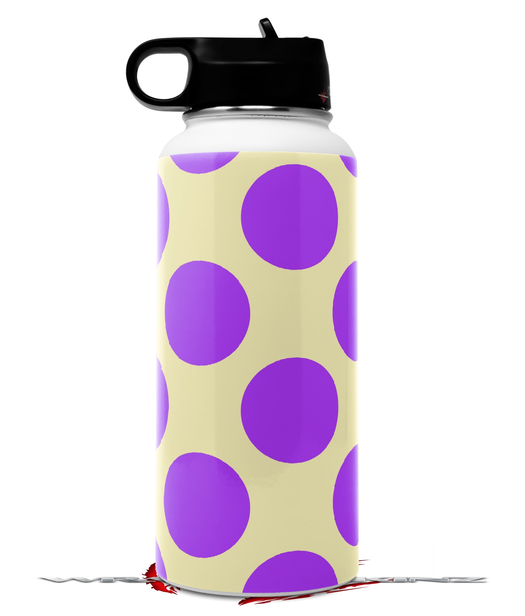 Skin Wrap Decal compatible with Hydro Flask Wide Mouth Bottle 32oz Kearas Polka Dots Purple On Cream (BOTTLE NOT INCLUDED)