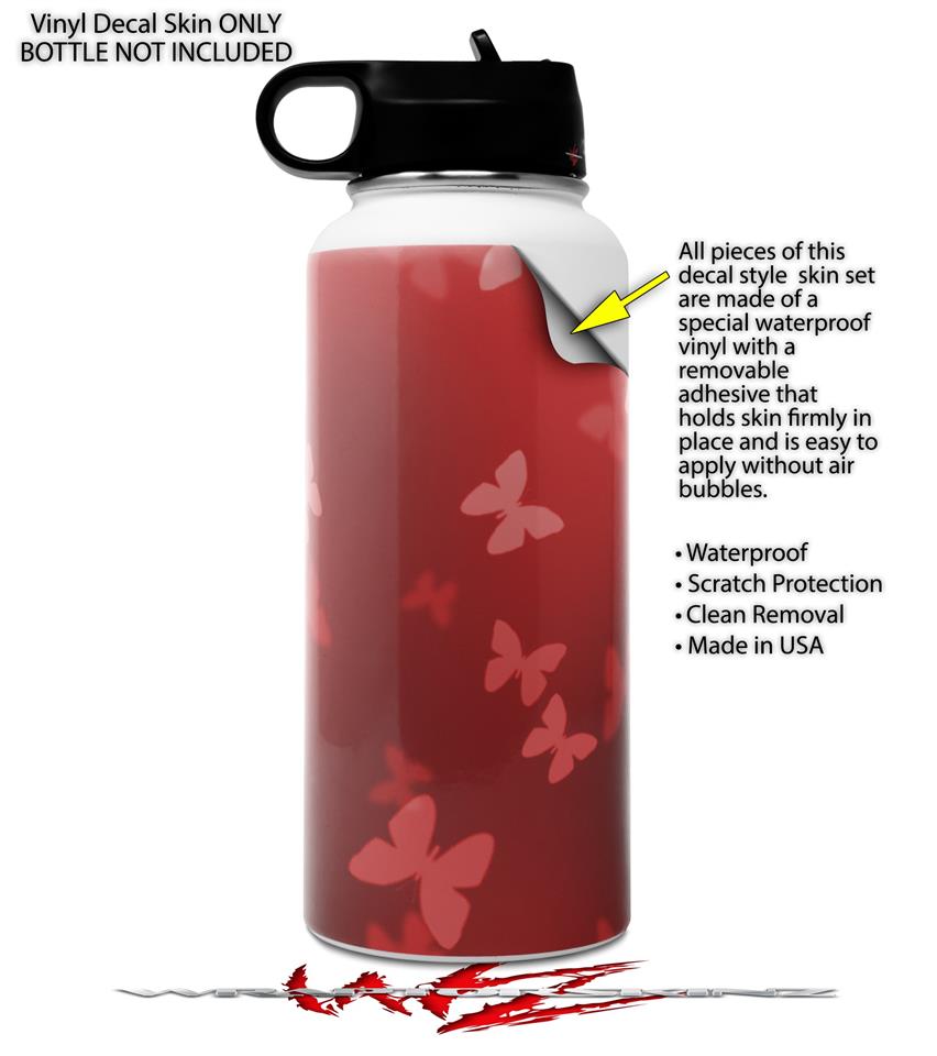 Skin Wrap Decal compatible with Hydro Flask Wide Mouth Bottle 32oz Bokeh Butterflies Red (BOTTLE NOT INCLUDED)