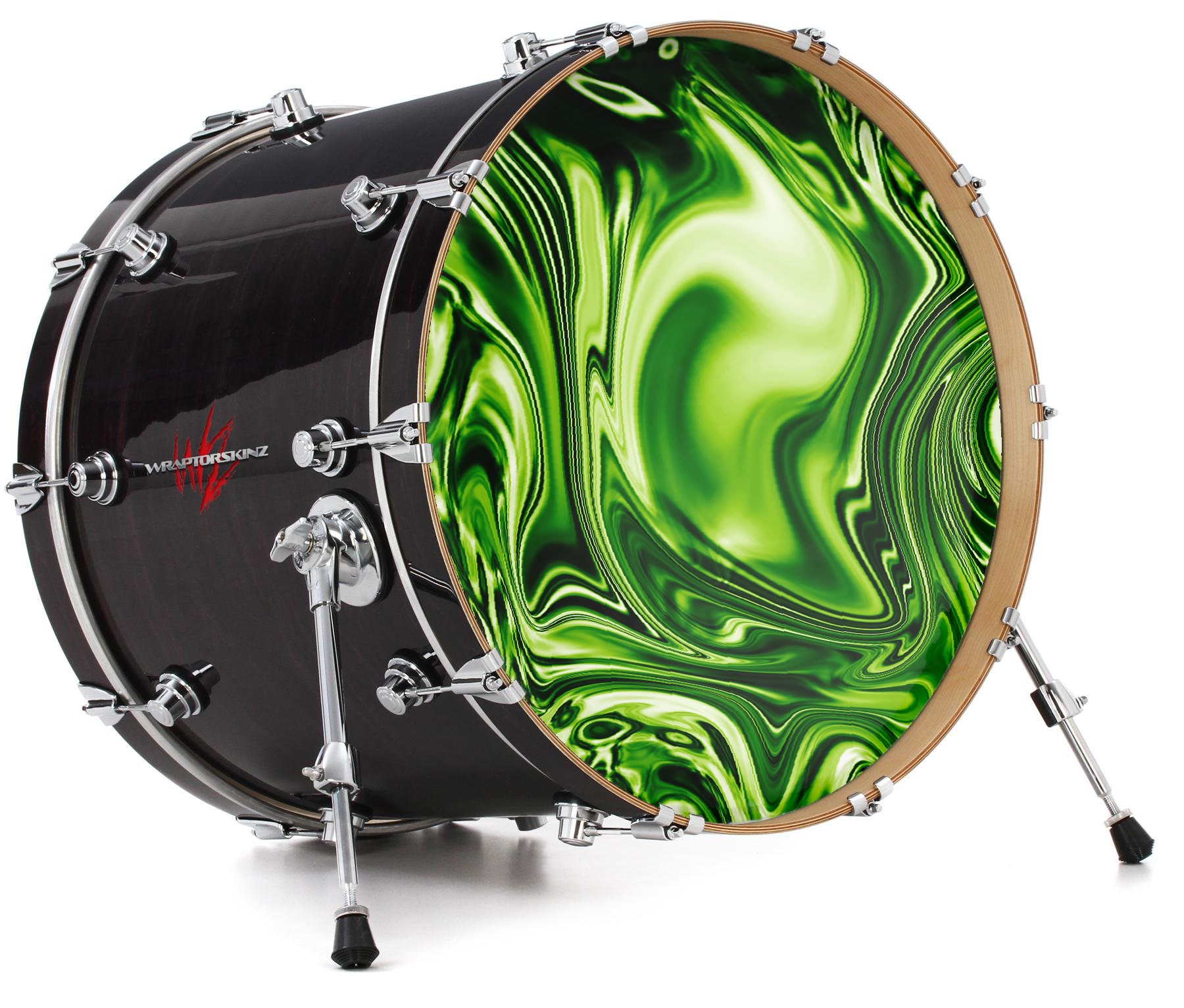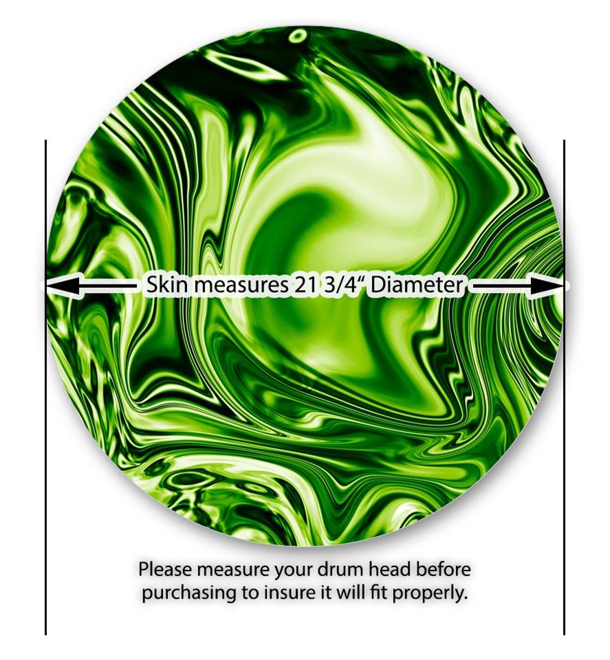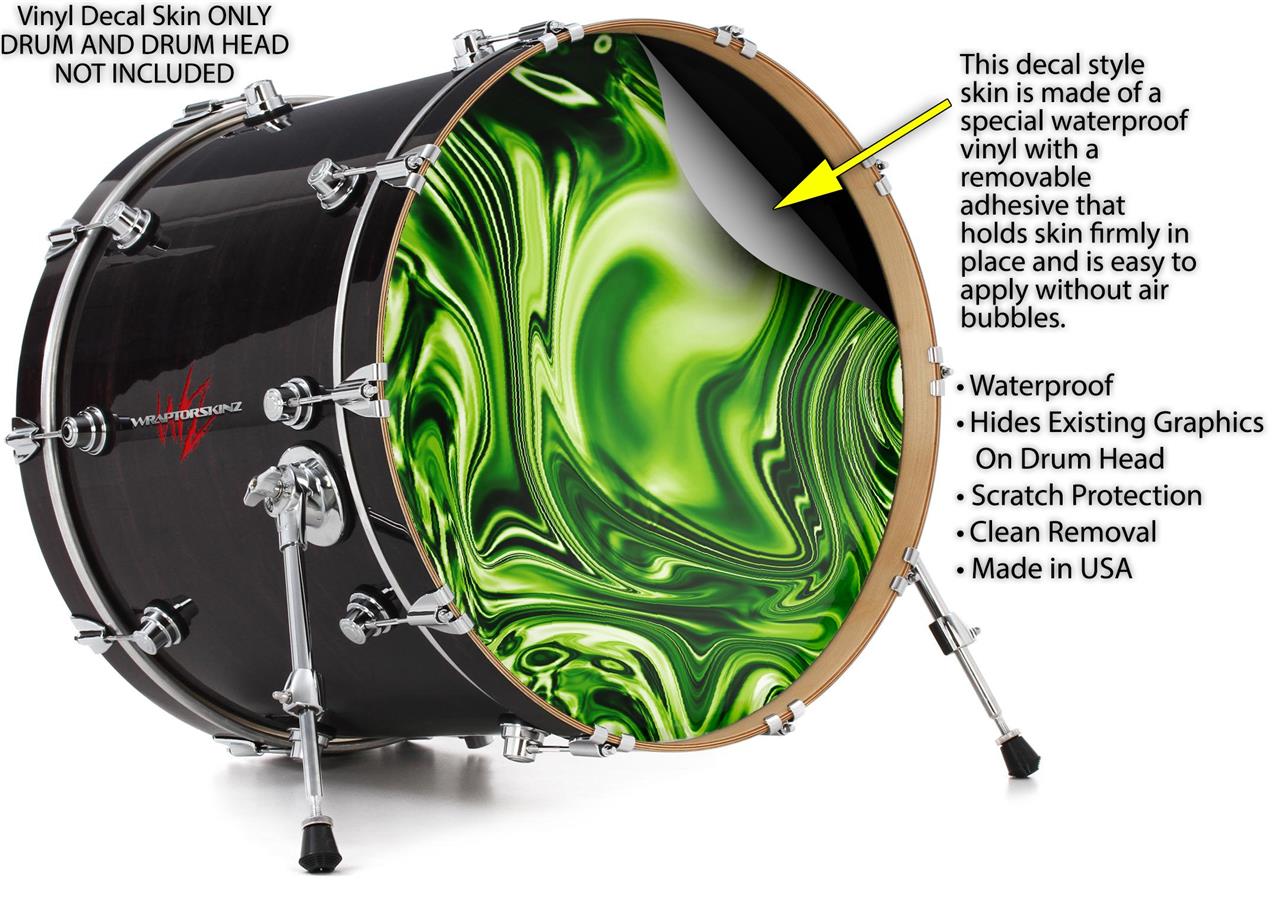 Vinyl Decal Skin Wrap for 22" Bass Kick Drum Head Liquid Metal Chrome Neon Green - DRUM HEAD NOT INCLUDED