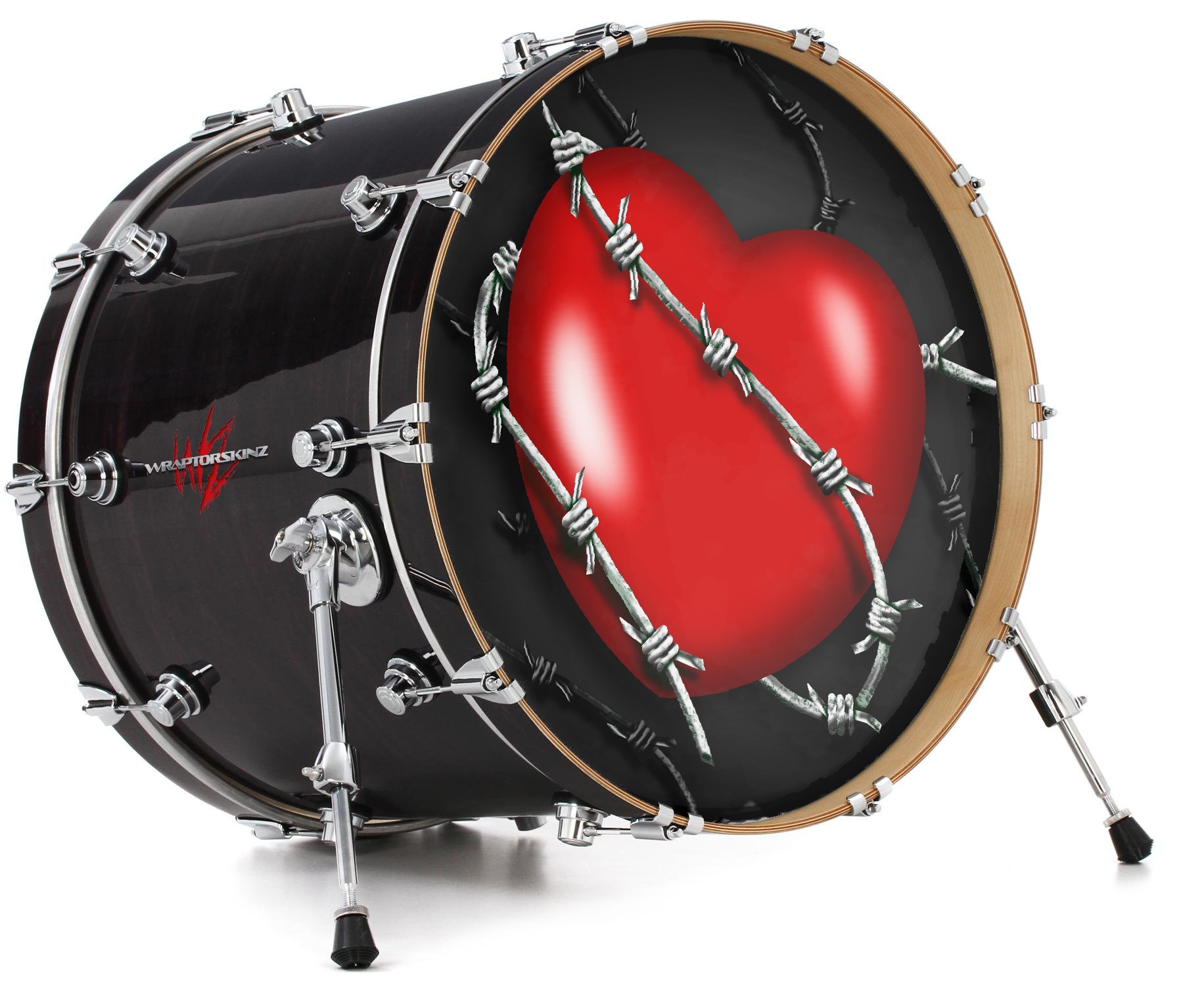 Vinyl Decal Skin Wrap for 22" Bass Kick Drum Head Barbwire Heart Red - DRUM HEAD NOT INCLUDED