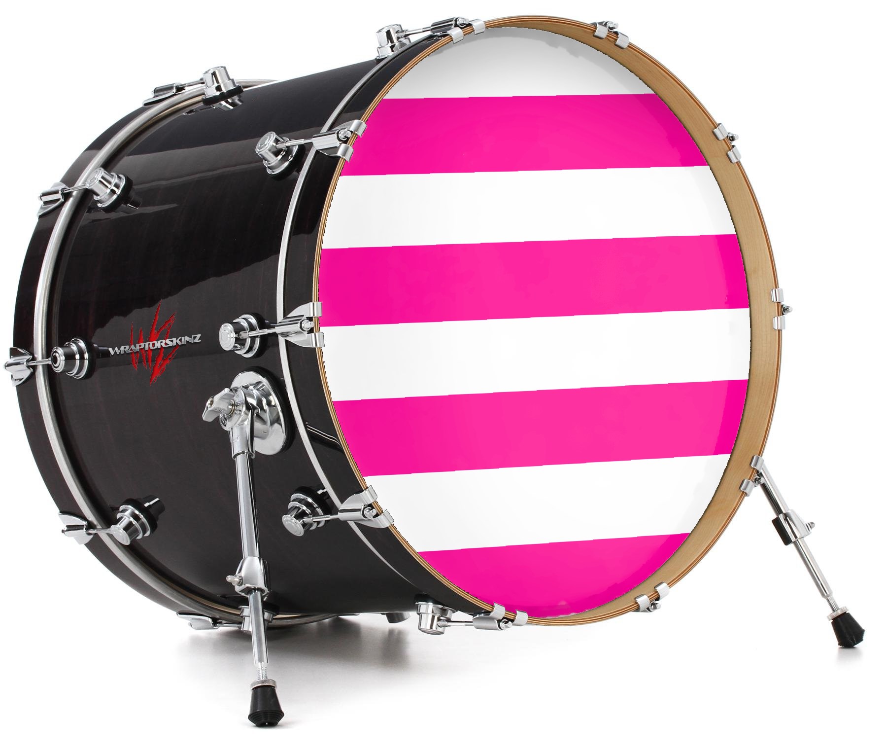 Vinyl Decal Skin Wrap for 22" Bass Kick Drum Head Psycho Stripes Hot Pink and White - DRUM HEAD NOT INCLUDED