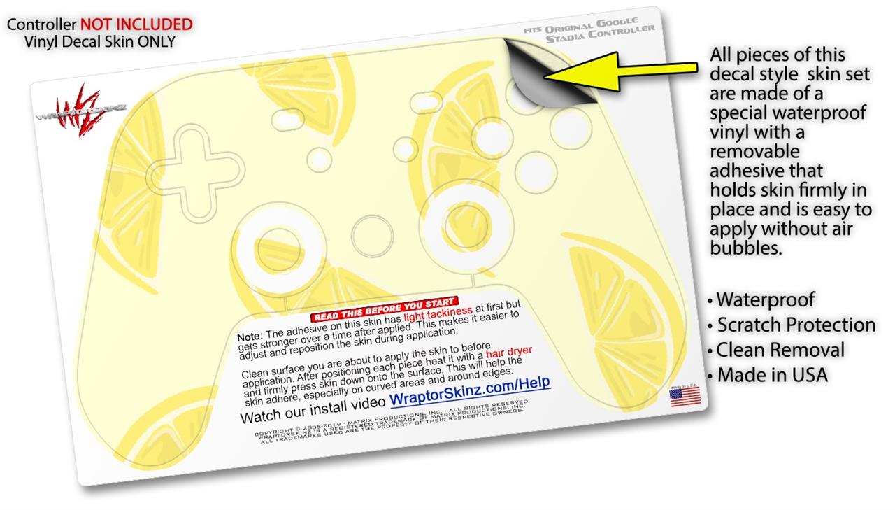Skin Decal Wrap works with Original Google Stadia Controller Lemons Yellow Skin Only CONTROLLER NOT INCLUDED