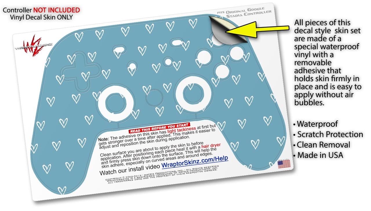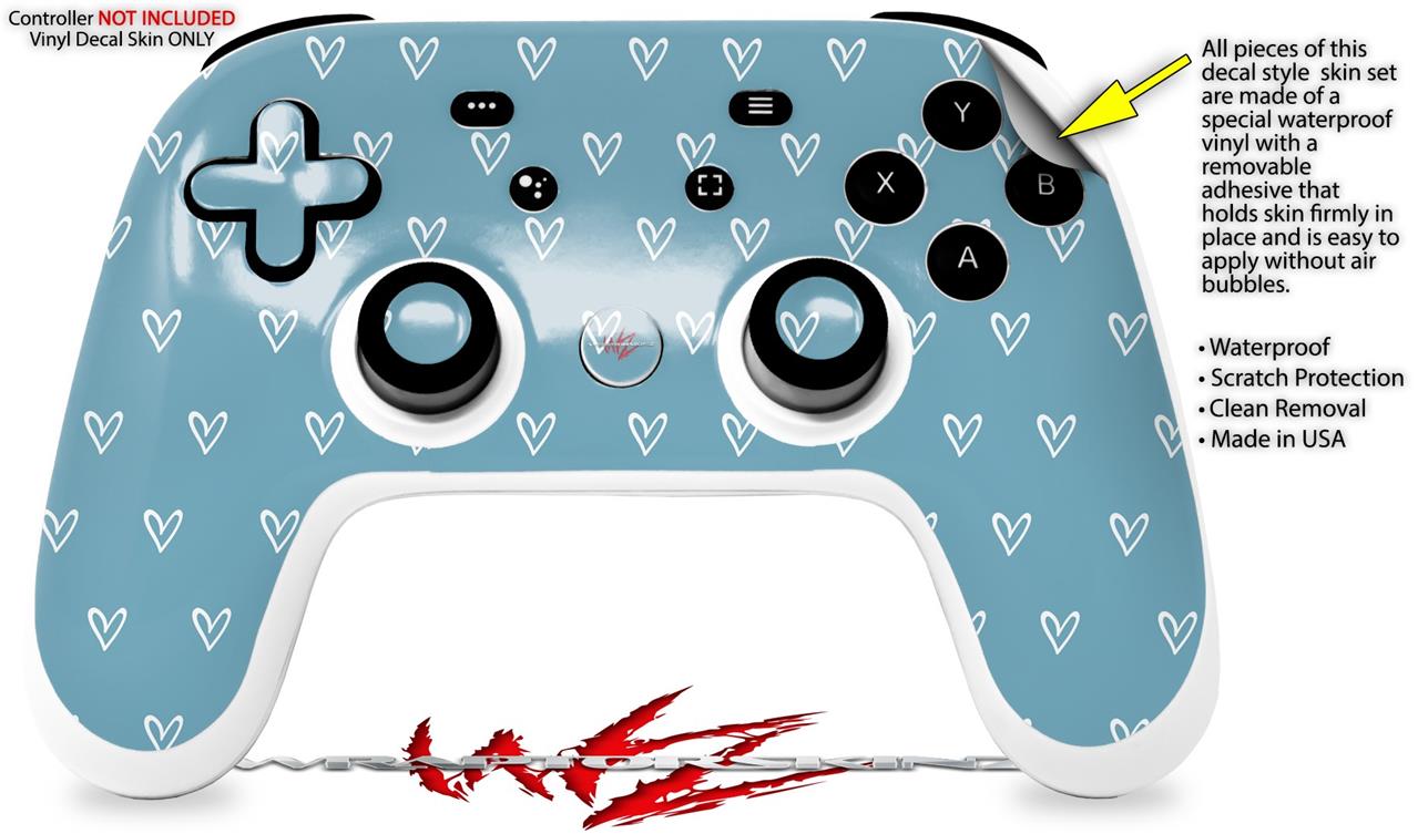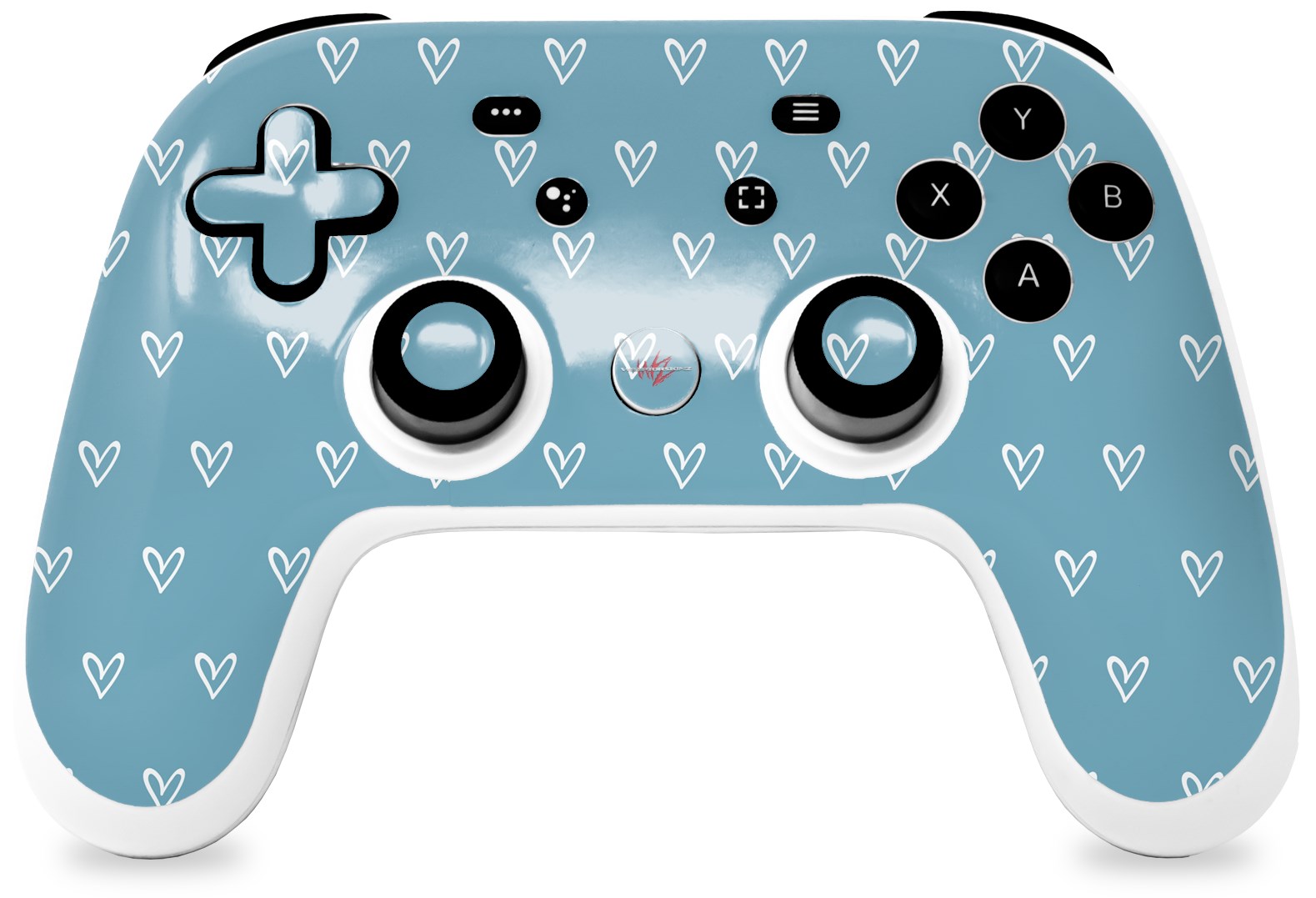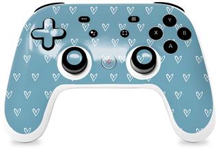 Skin Decal Wrap works with Original Google Stadia Controller Hearts Blue On White Skin Only CONTROLLER NOT INCLUDED