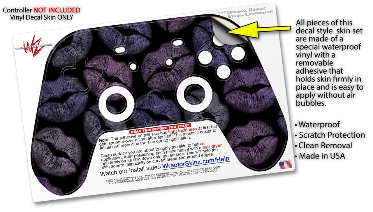 Skin Decal Wrap works with Original Google Stadia Controller Purple And Black Lips Skin Only CONTROLLER NOT INCLUDED
