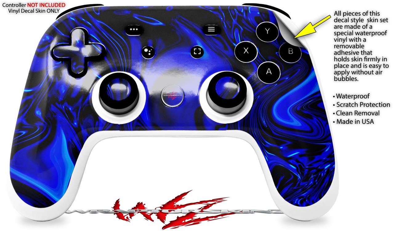 Skin Decal Wrap works with Original Google Stadia Controller Liquid Metal Chrome Royal Blue Skin Only CONTROLLER NOT INCLUDED