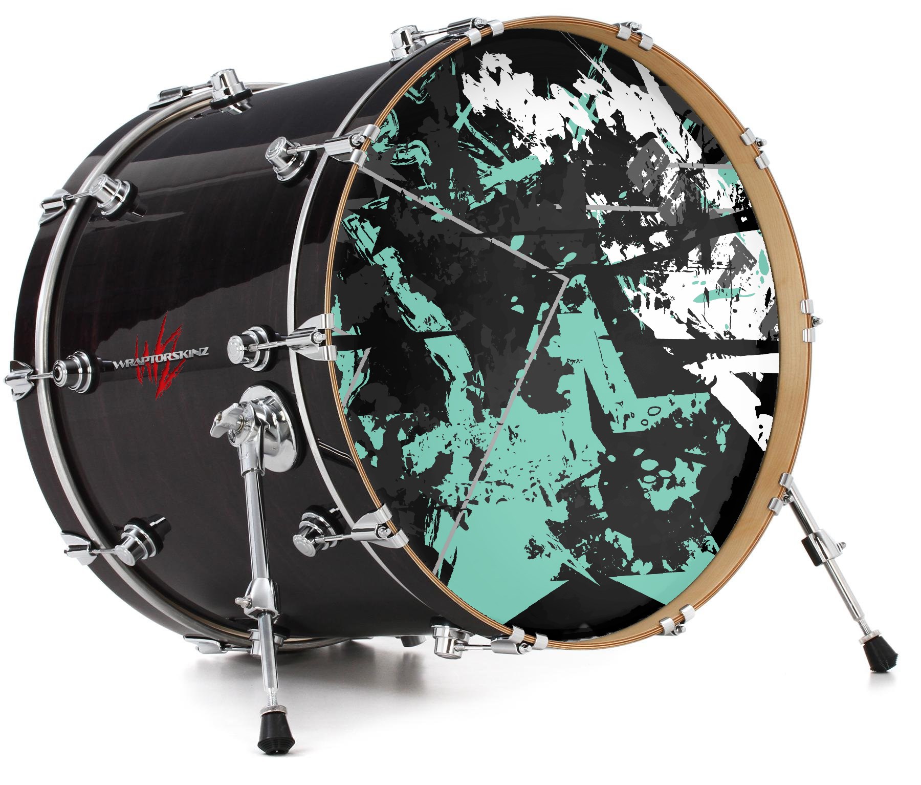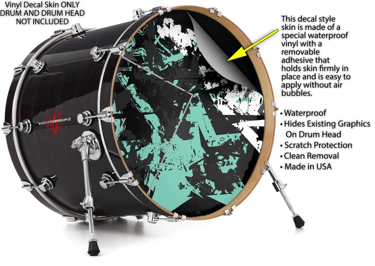 This design also available in other sizes. WraptorSkinz® skin wraps compatible with most kick drum heads. Printed using superb photo quality designs and vibrant colors printed with special fade resistant inks that last even in direct sun for years. WraptorSkinz are a composite three layer commercial grade materials vinyl. The bottom layer is a air release, grey block out removable adhesive that hides existing graphics on the drum head and is easily applied without air bubbles. The middle layer is a flexible vinyl printed with UV protected, fade resistant inks that deliver superb photo quality designs in vibrant colors. Finally, we bond a professional grade laminate over the entire skin adding a glossy protective finish.